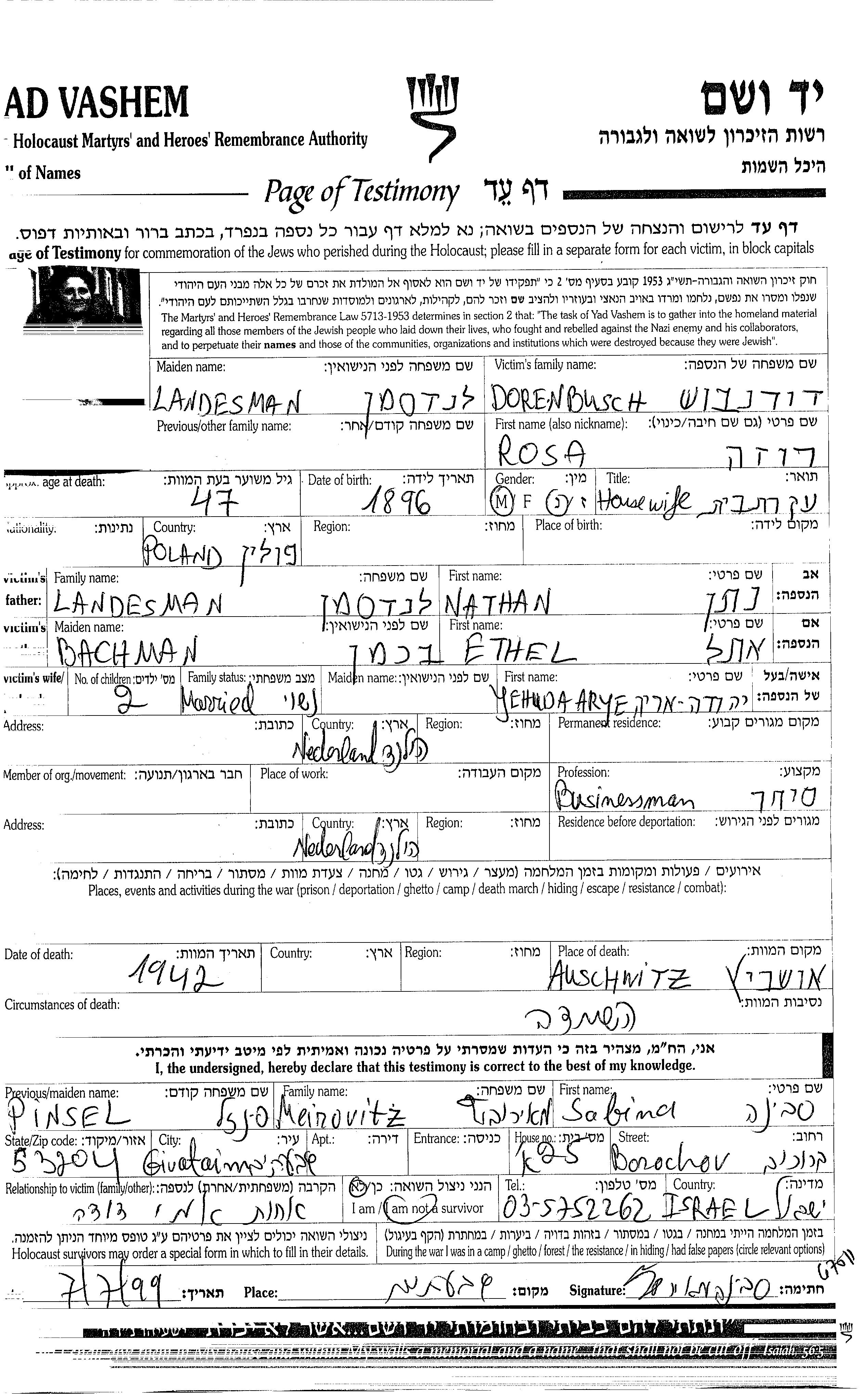 Yad Vashem - Pages of Testimony Names Memorial Collection