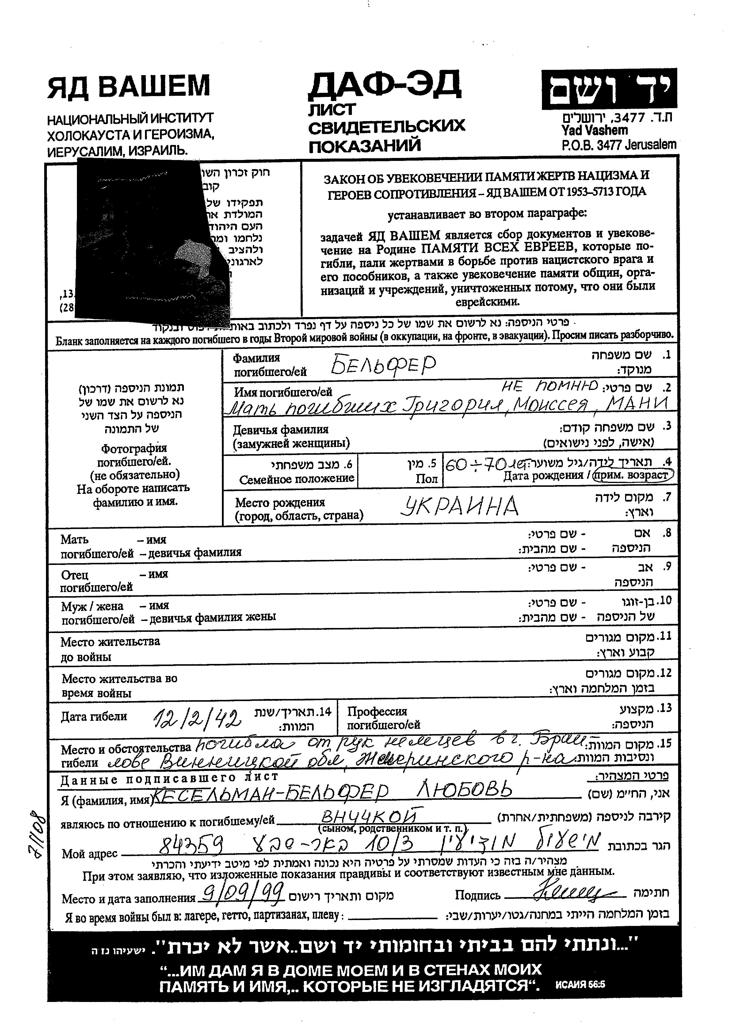 Yad Vashem - Pages of Testimony Names Memorial Collection