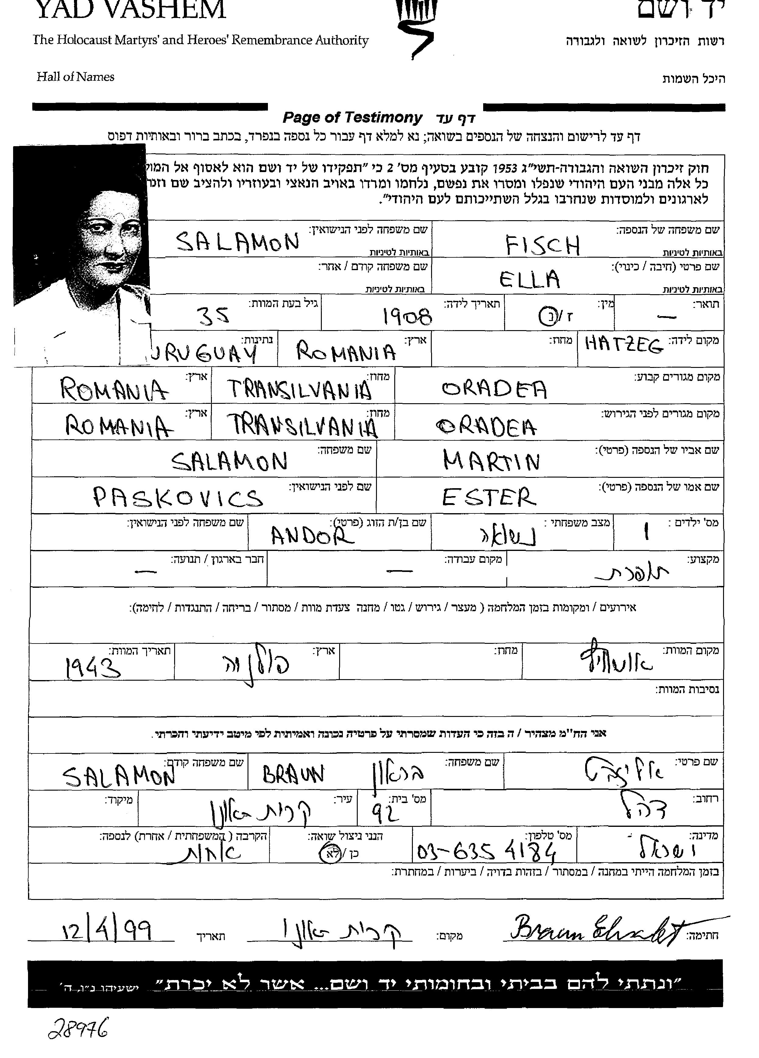 Yad Vashem - Pages of Testimony Names Memorial Collection