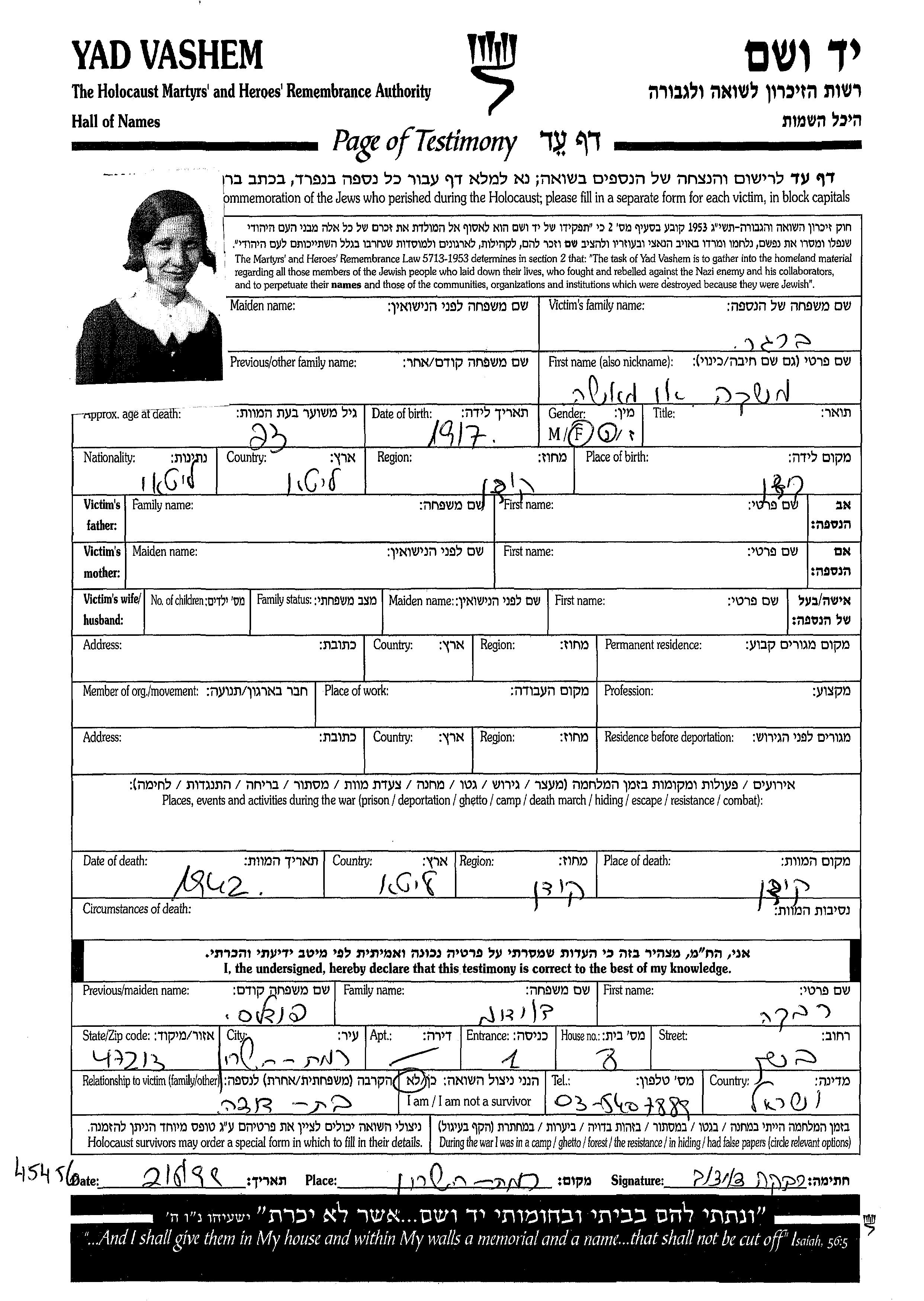 Recherche par date de la mort pendant la période de la Shoah: 1933-1945. Sélectionnez 'Exact'; dans la liste pour rechercher l'année exacte, ou sélectionner '+/- 2 ans'; ou '+/- 5 ans