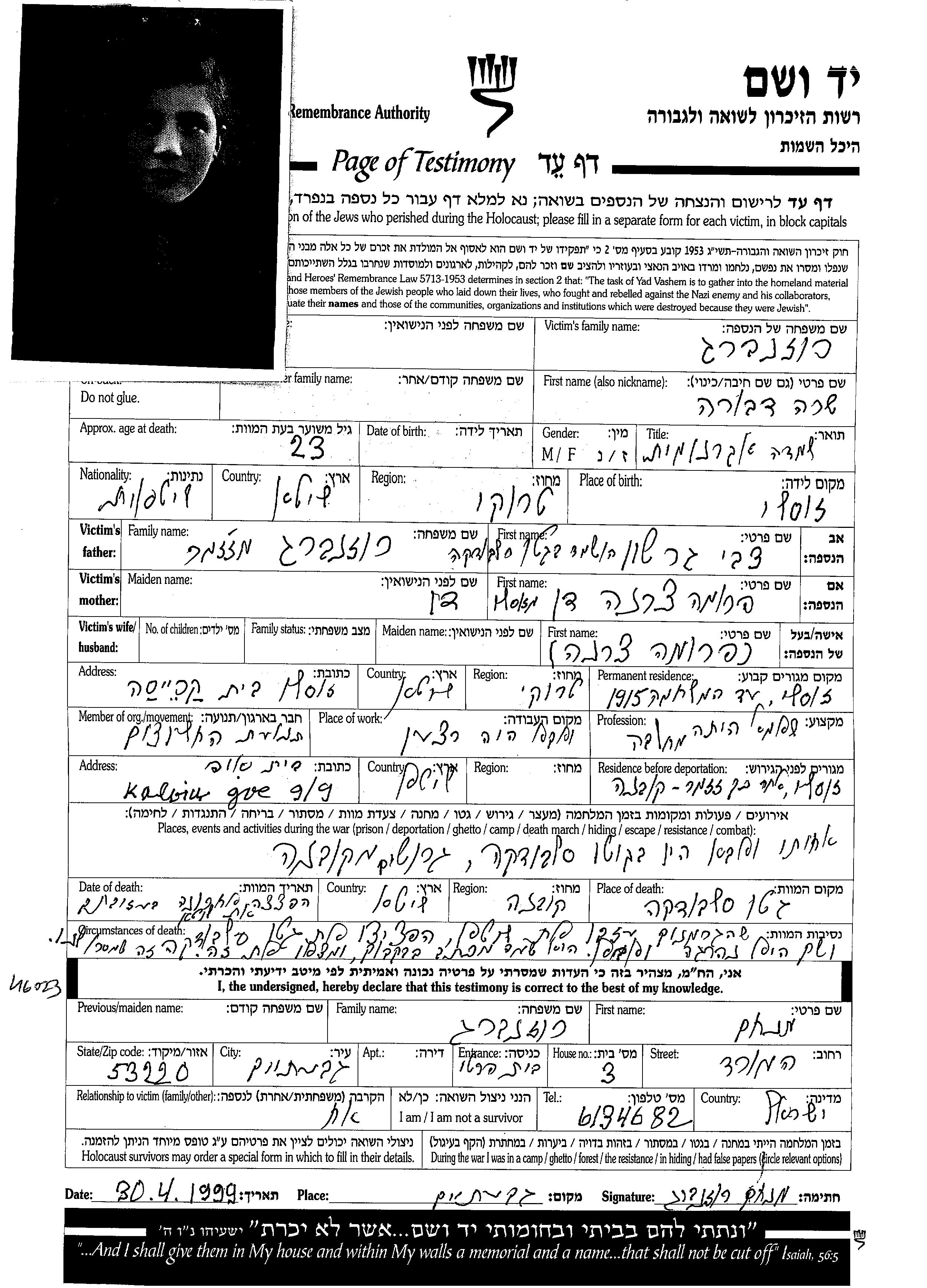 Yad Vashem - Pages of Testimony Names Memorial Collection