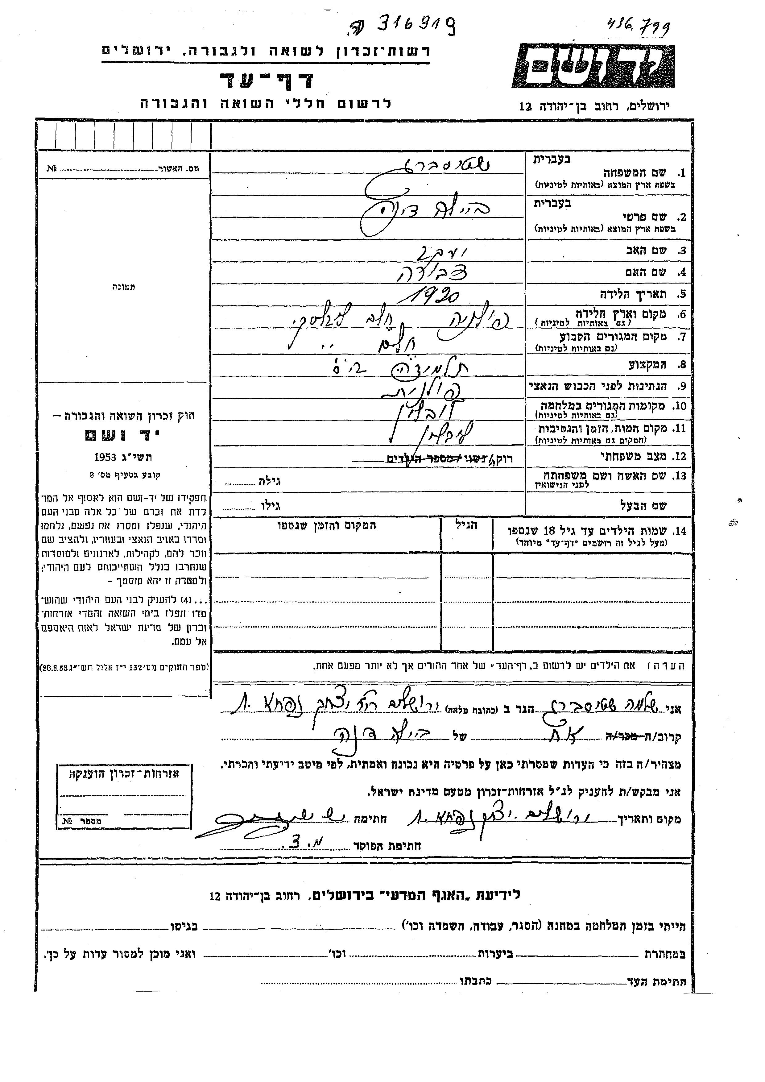 | Shtrassberg | Beila | Chelm, Pologne | Feuille de témoignage (digitale-signée) | |