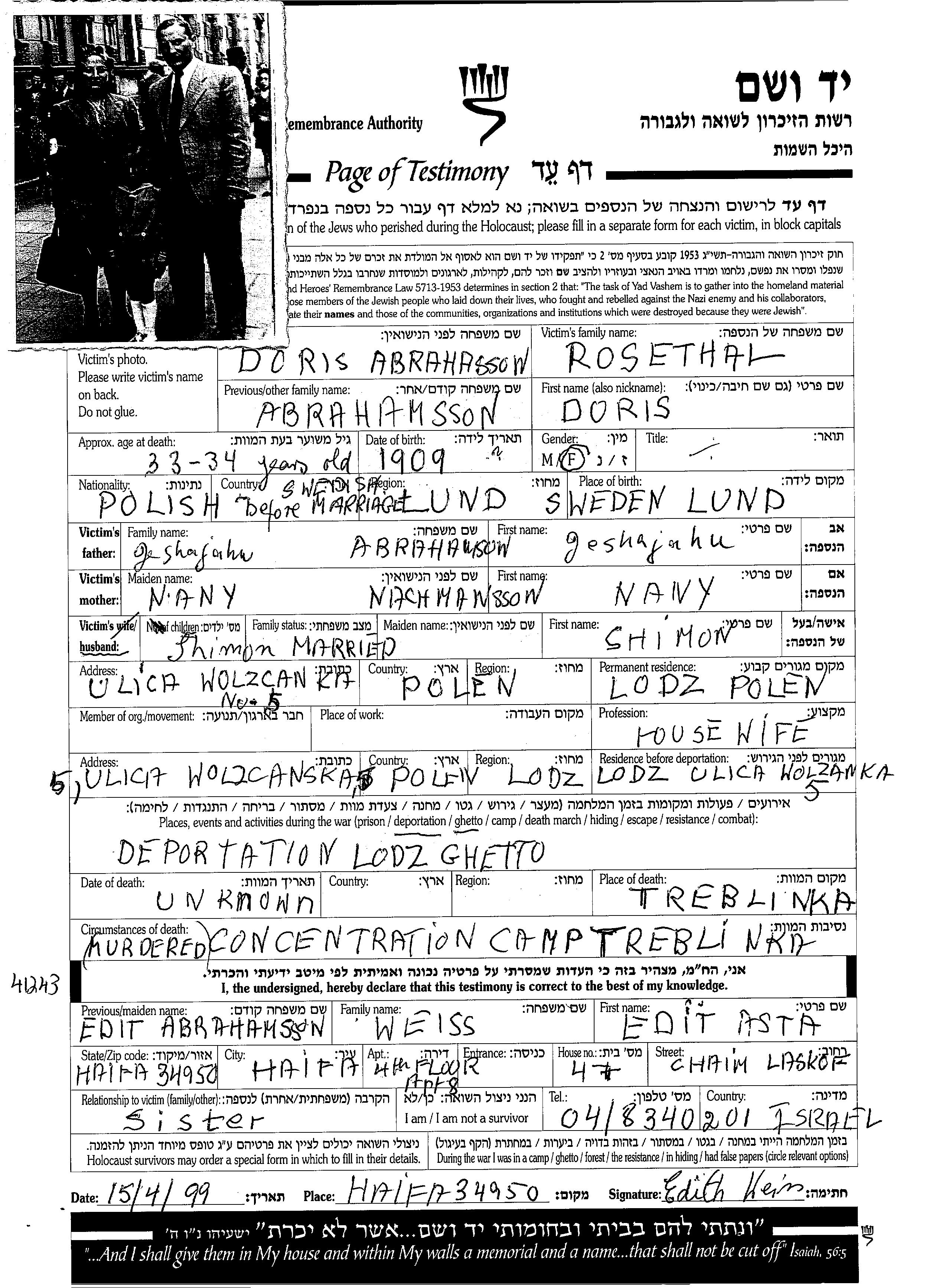 Yad Vashem - Pages of Testimony Names Memorial Collection