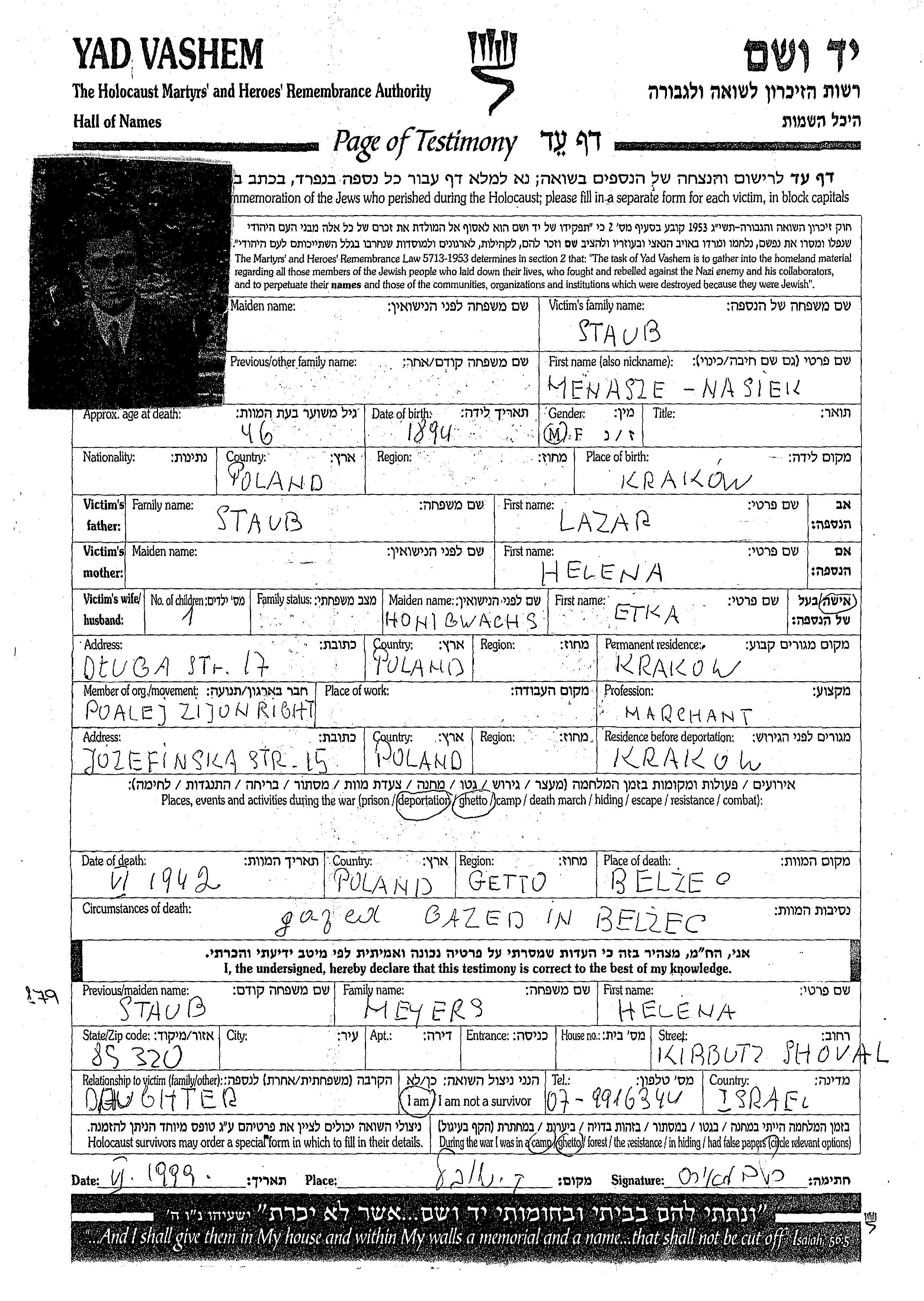 Yad Vashem - Pages of Testimony Names Memorial Collection