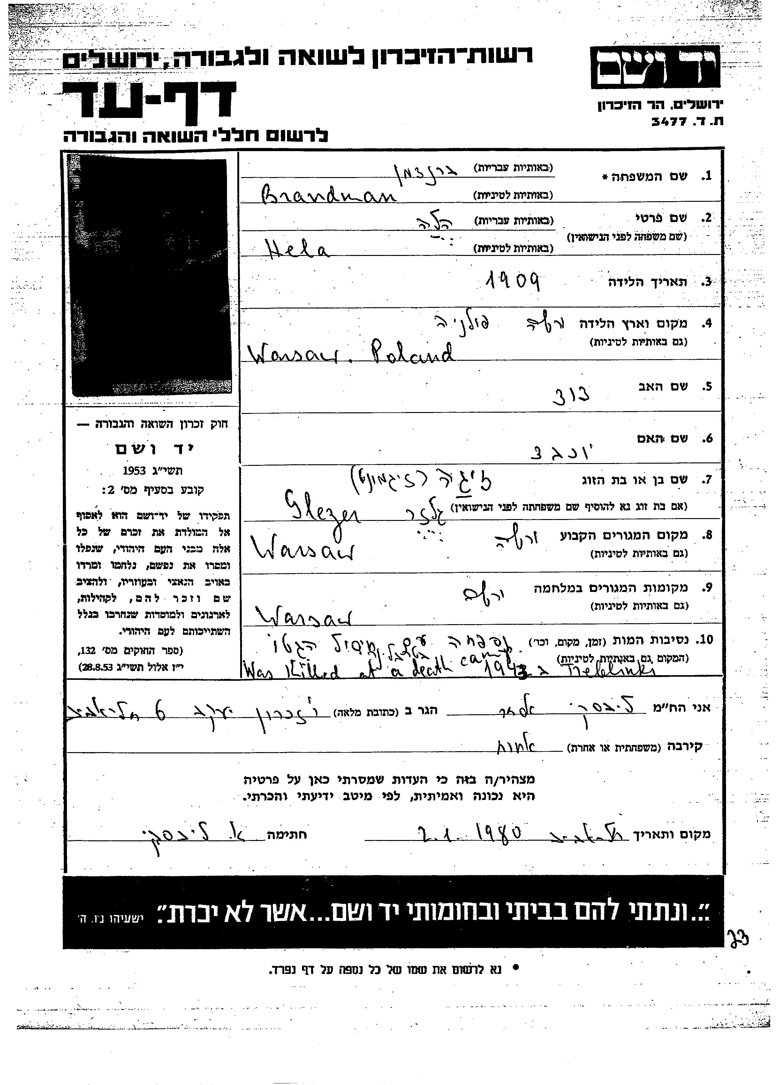 Yad Vashem - Pages of Testimony Names Memorial Collection