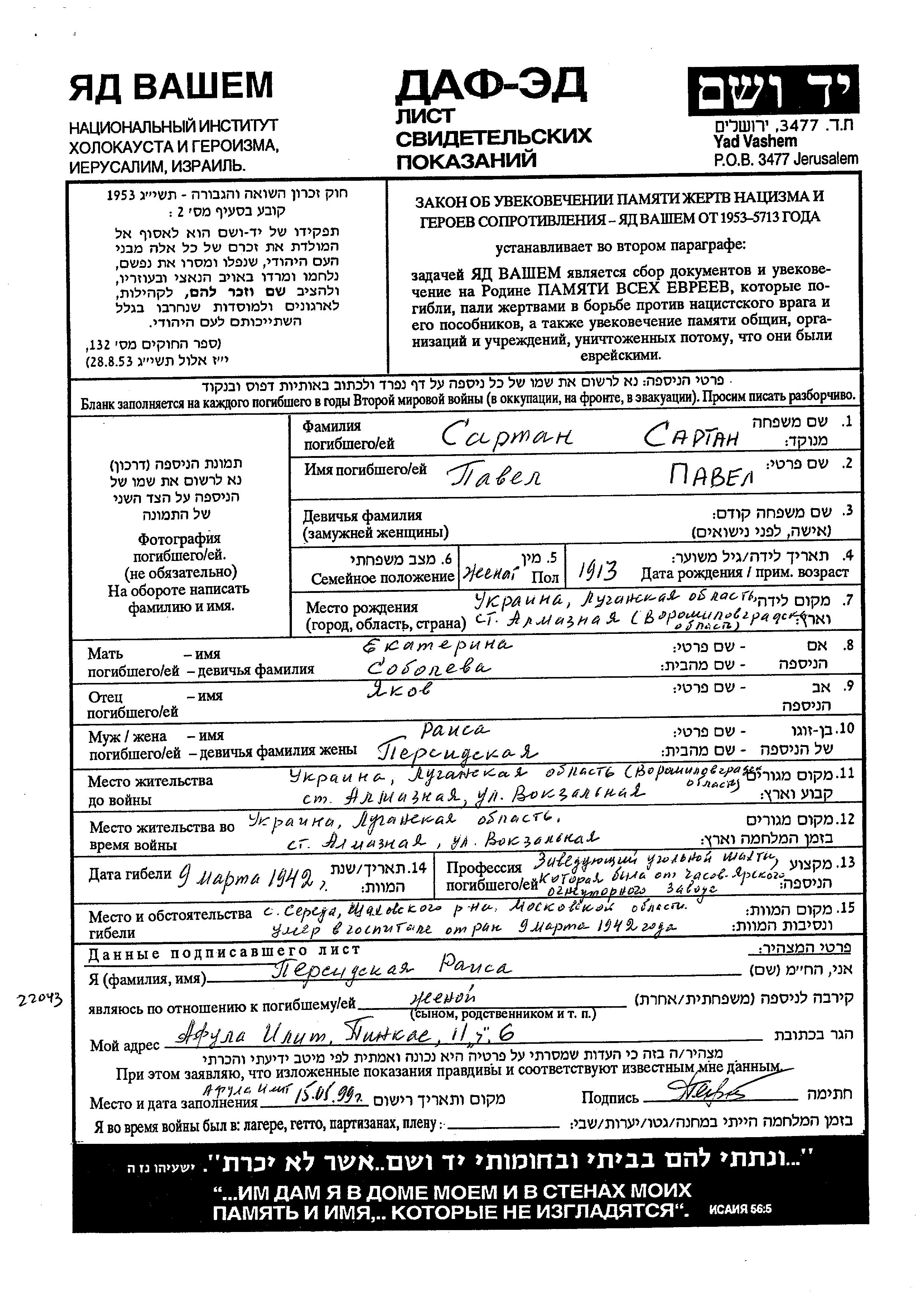 Recherche par date de la mort pendant la période de la Shoah: 1933-1945. Sélectionnez 'Exact'; dans la liste pour rechercher l'année exacte, ou sélectionner '+/- 2 ans'; ou '+/- 5 ans
