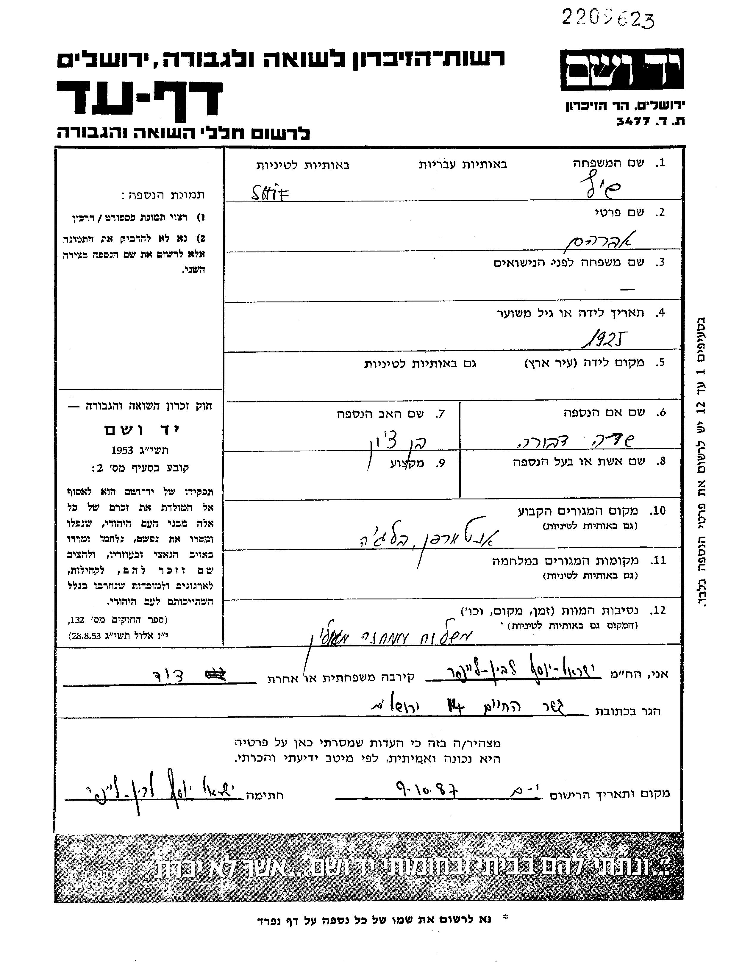 Yad Vashem - Pages of Testimony Names Memorial Collection