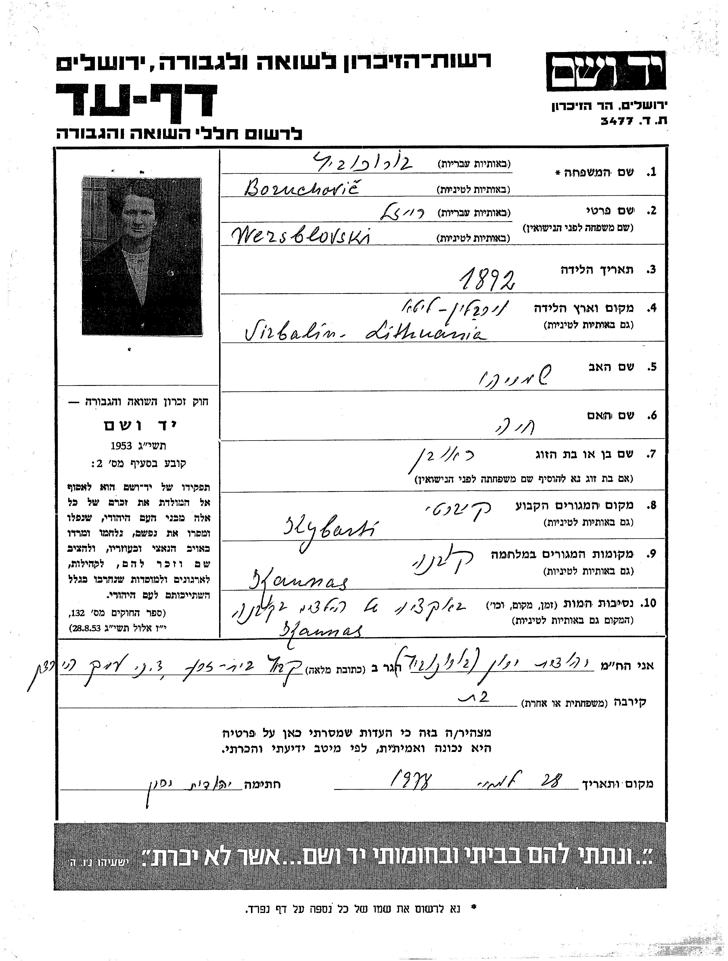 Boruchovic | Reizl | 1892 | Kybartai, Lituanie | Feuille de témoignage |