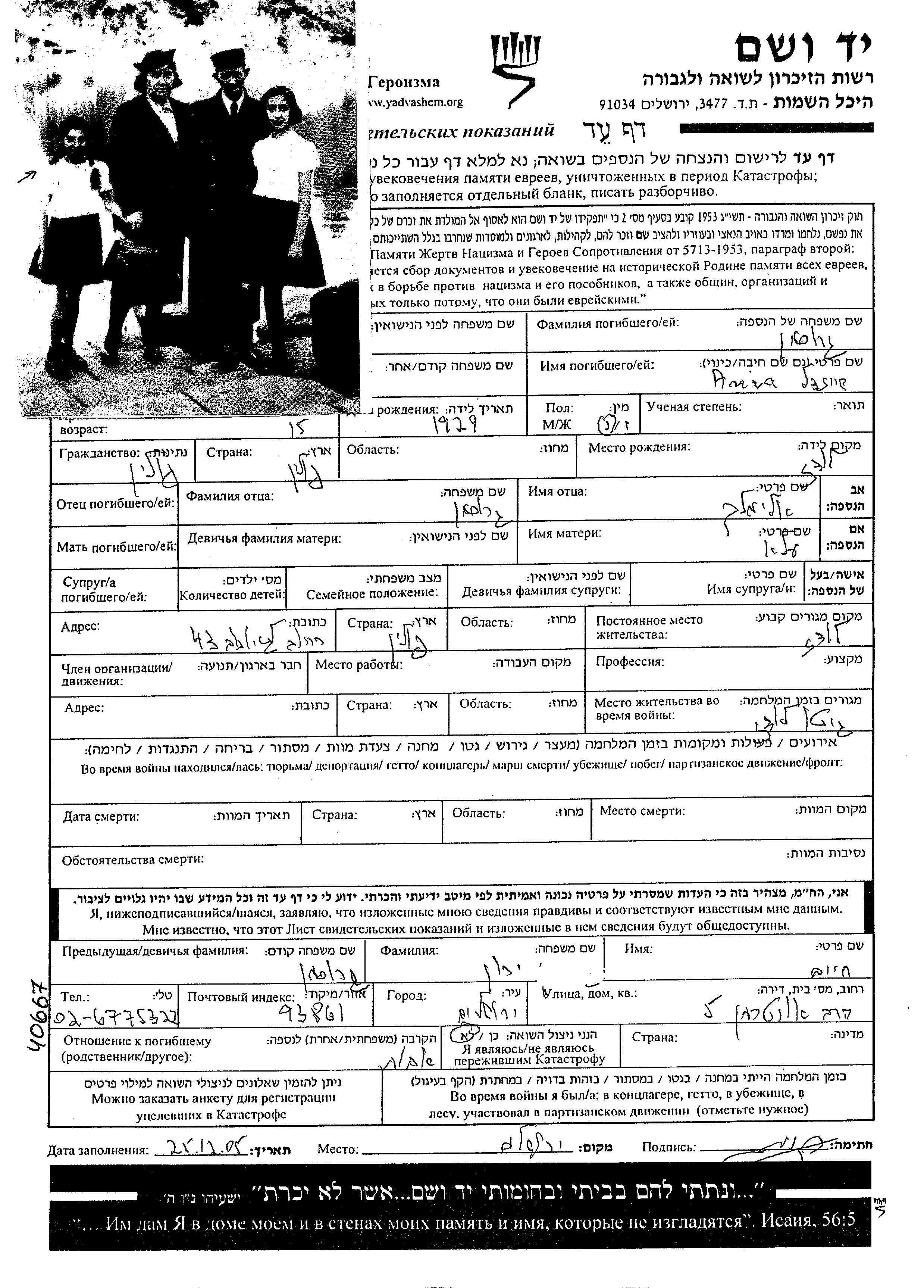 Yad Vashem - Pages of Testimony Names Memorial Collection