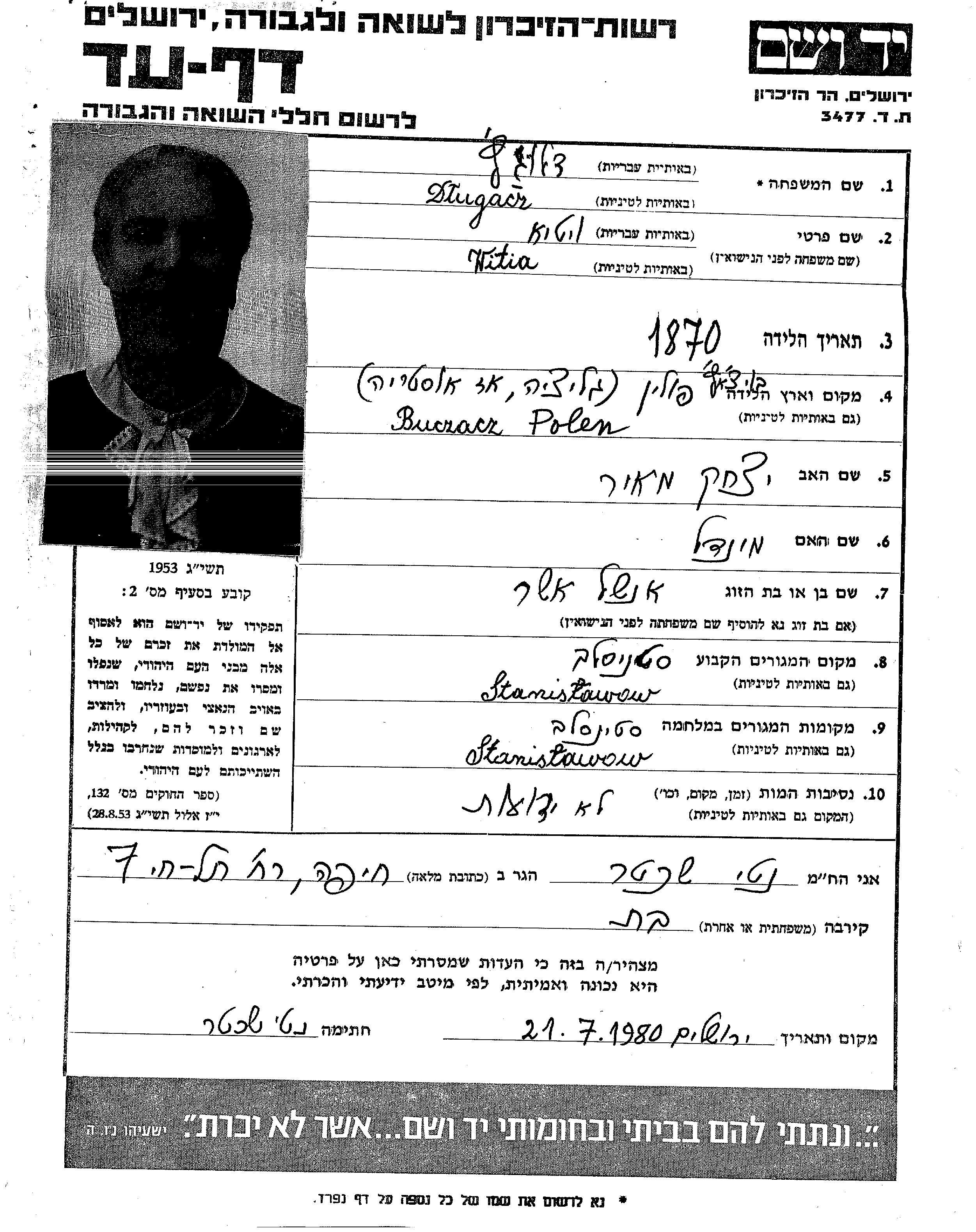 Yad Vashem - Pages of Testimony Names Memorial Collection