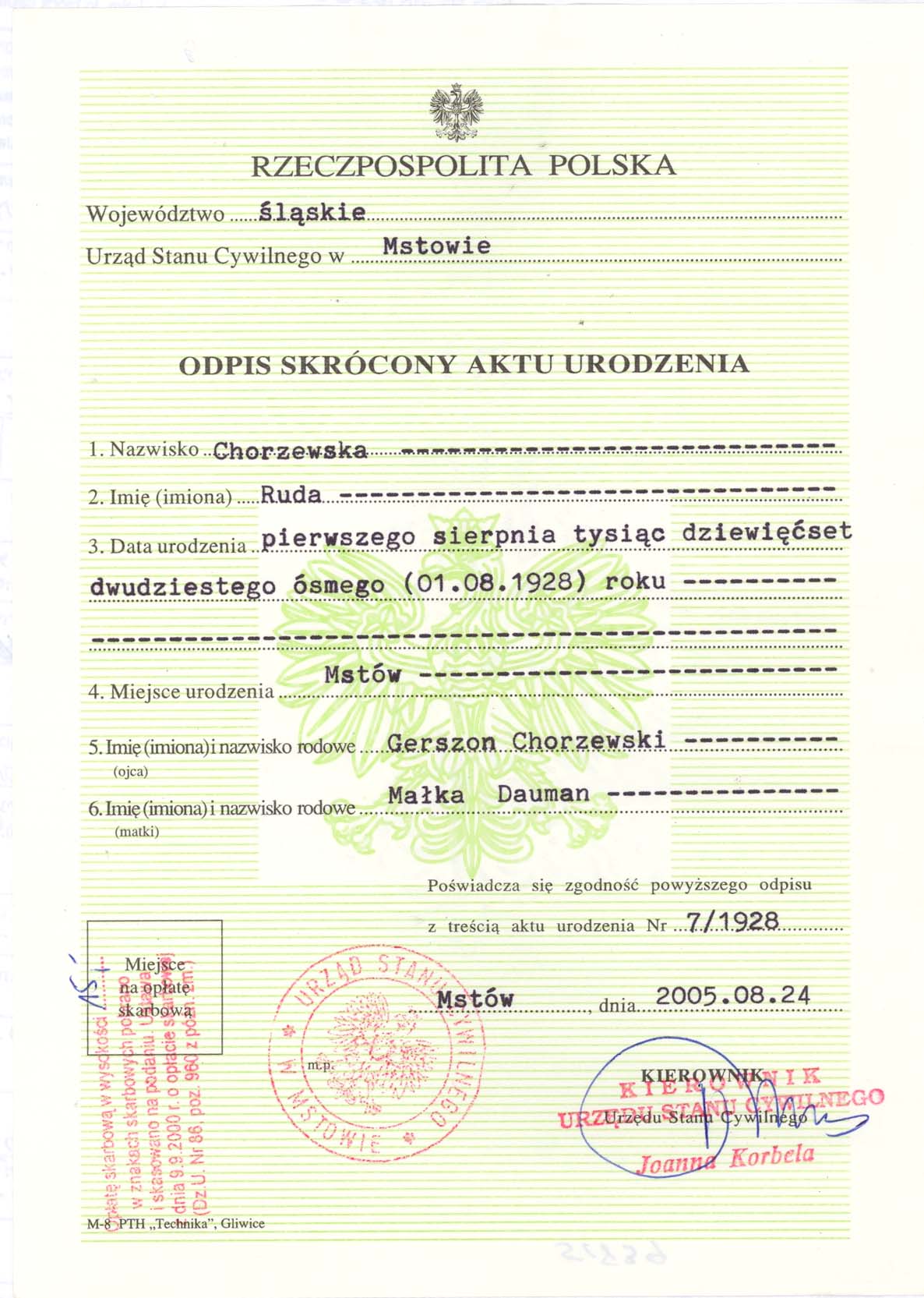 Personal documents: Khorzevski Chorzewski Ruda Roda