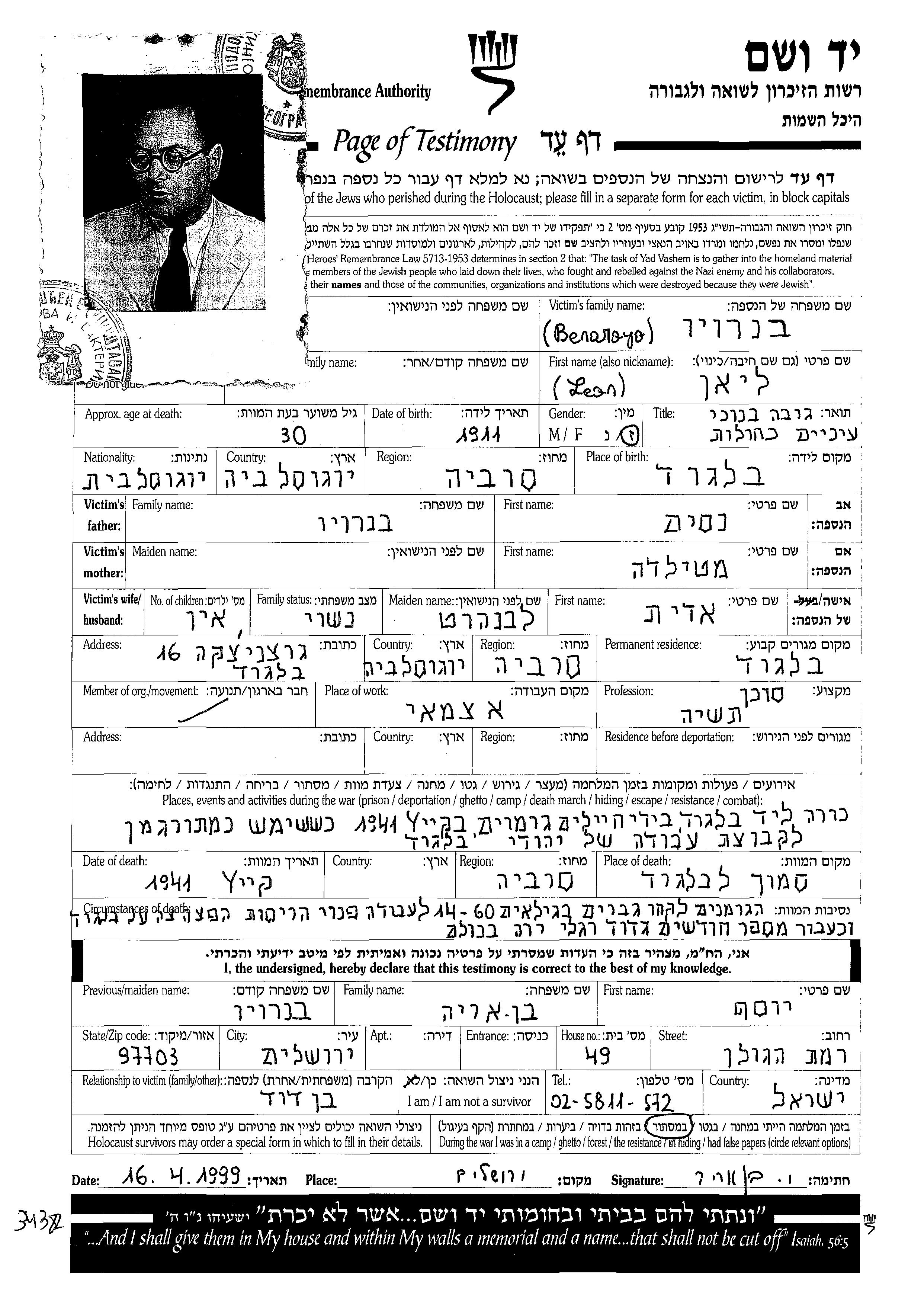 Yad Vashem - Pages of Testimony Names Memorial Collection