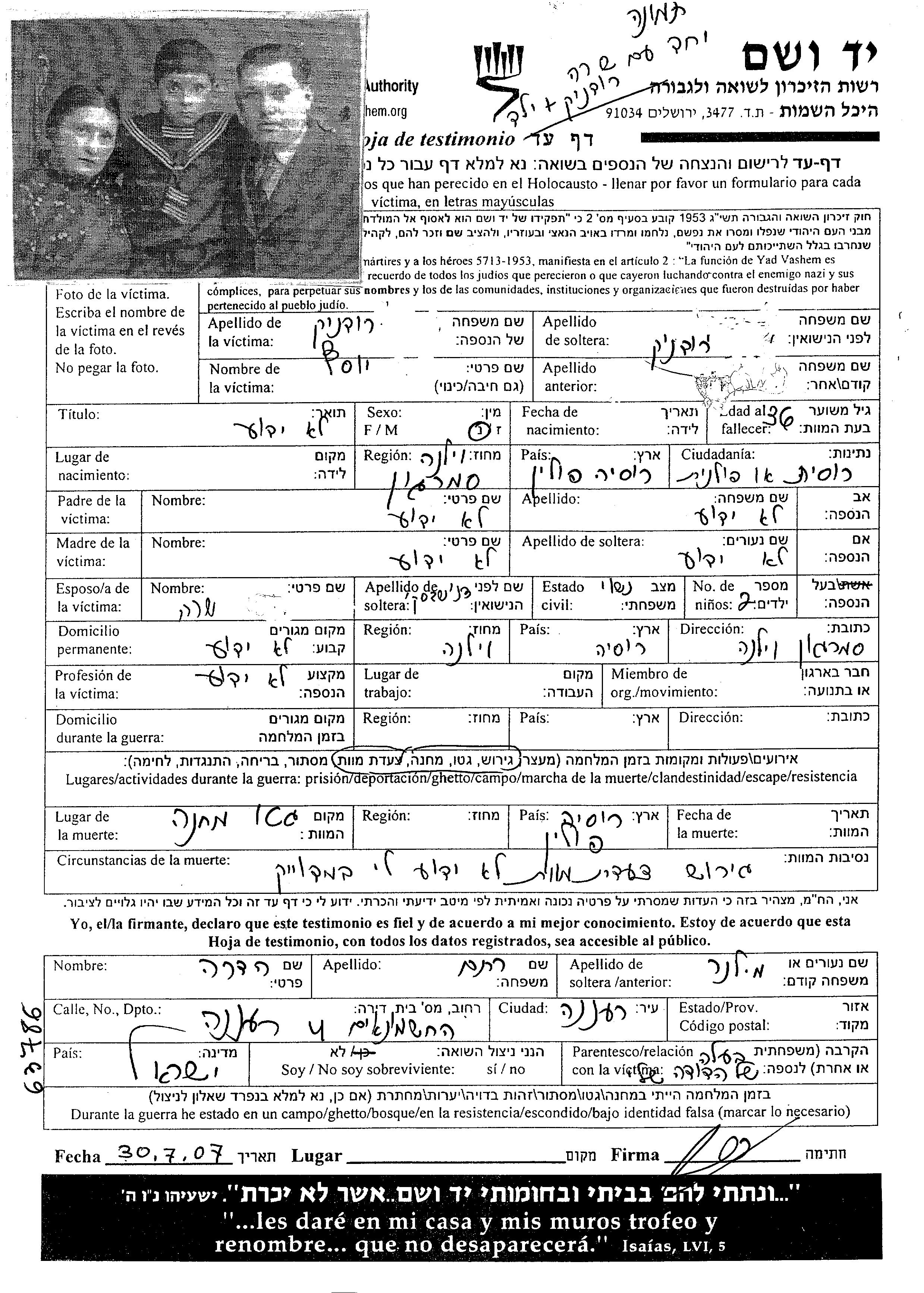 Yad Vashem - Pages of Testimony Names Memorial Collection