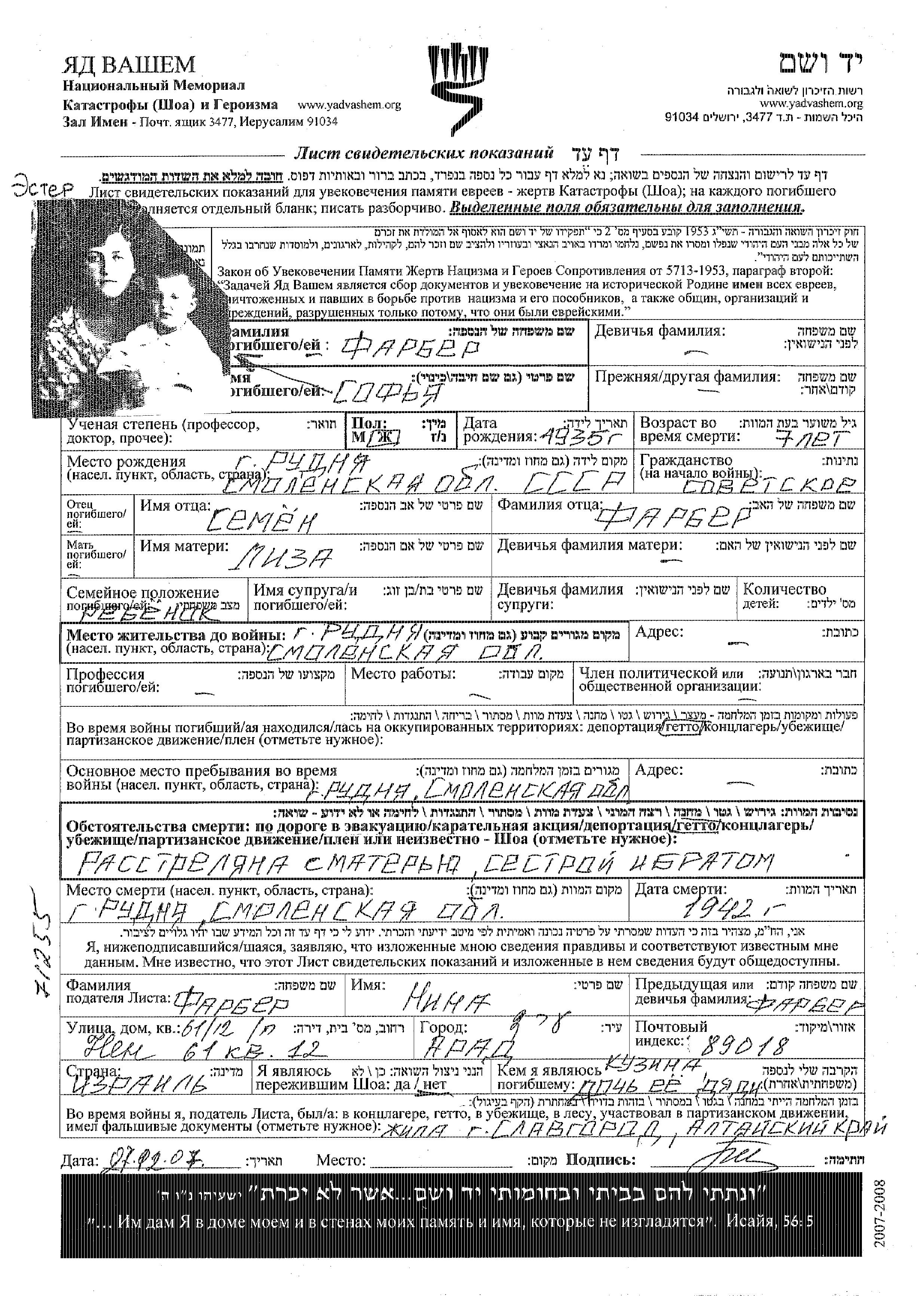Yad Vashem - Pages of Testimony Names Memorial Collection