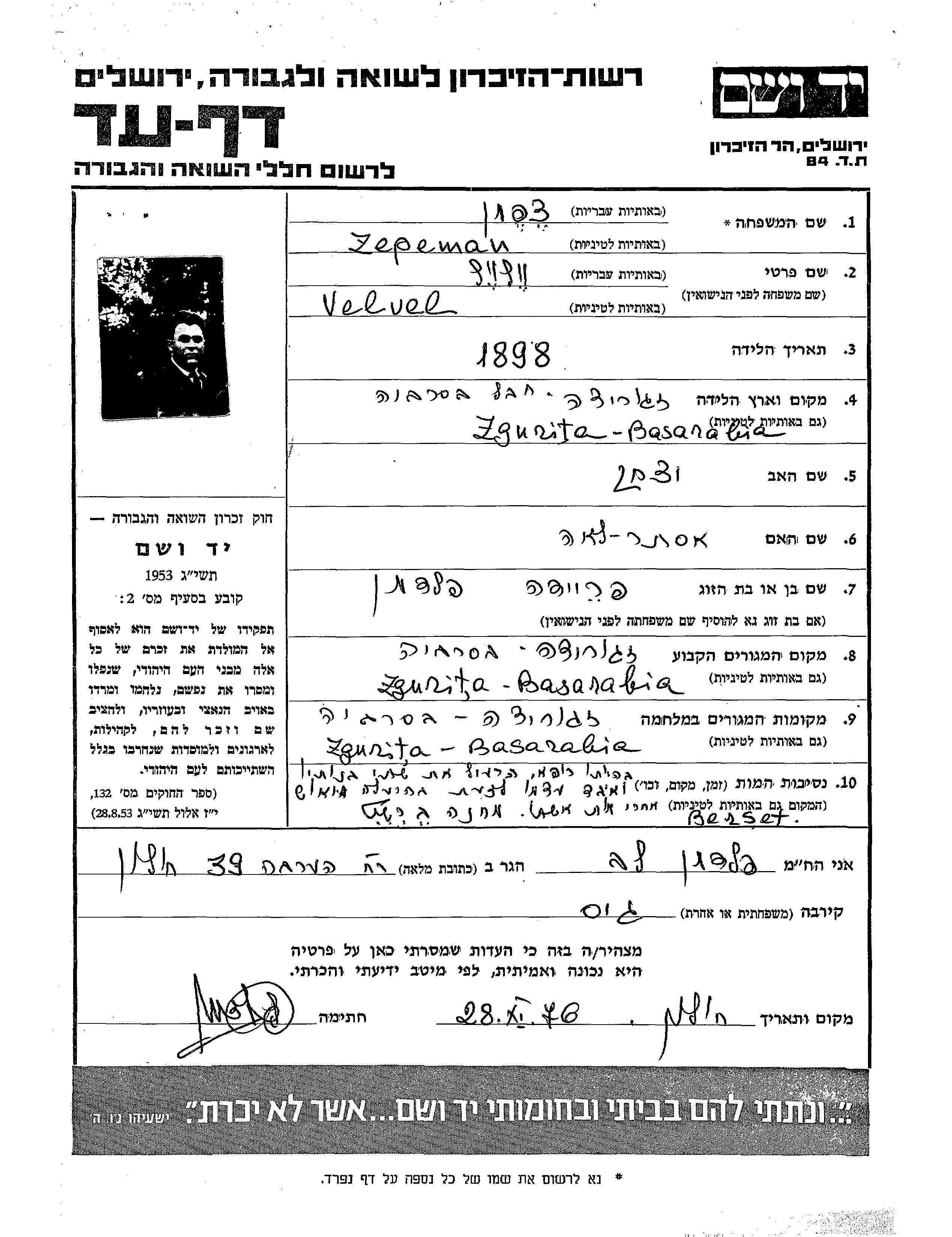 Yad Vashem - Pages of Testimony Names Memorial Collection