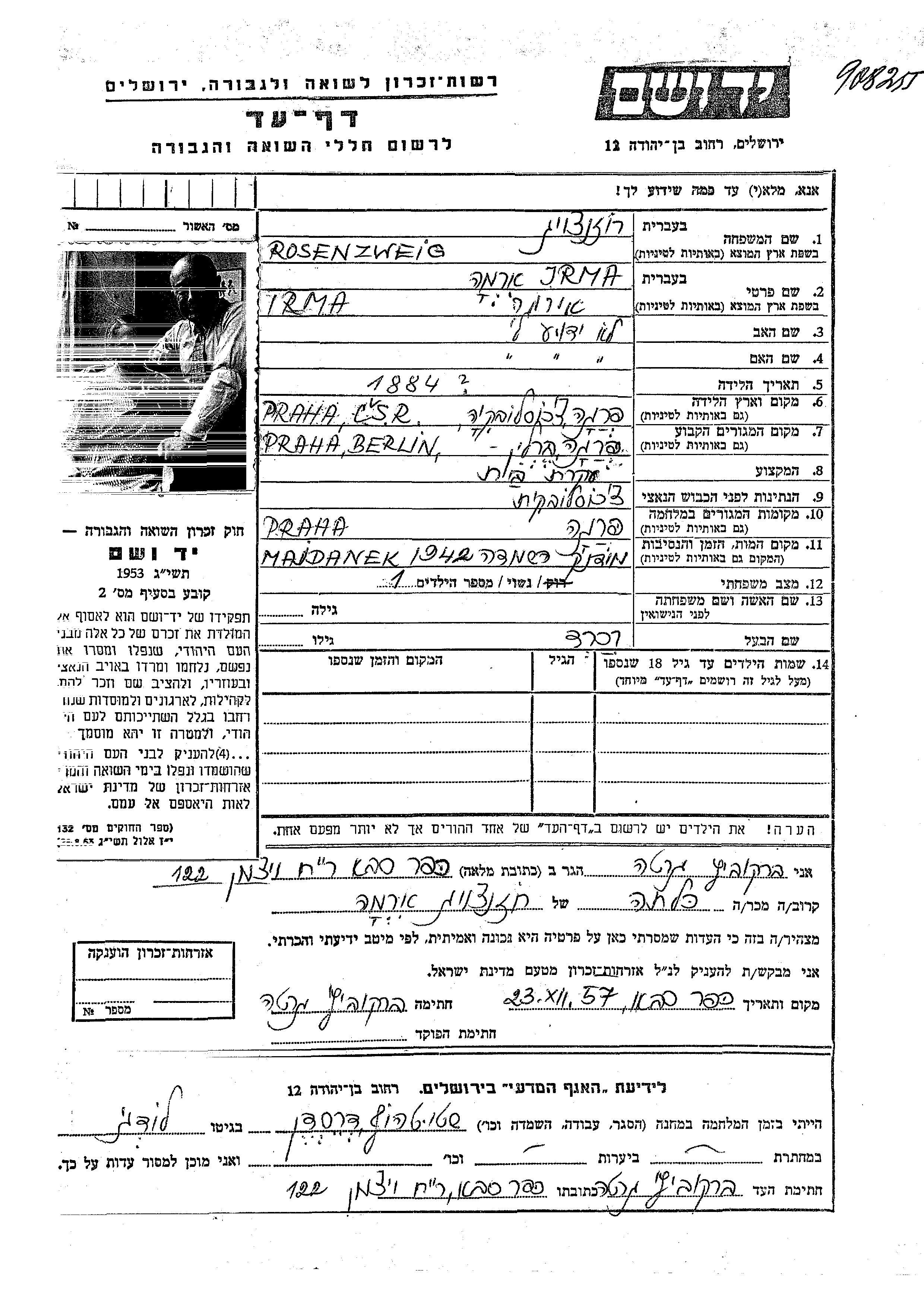 Yad Vashem - Pages of Testimony Names Memorial Collection