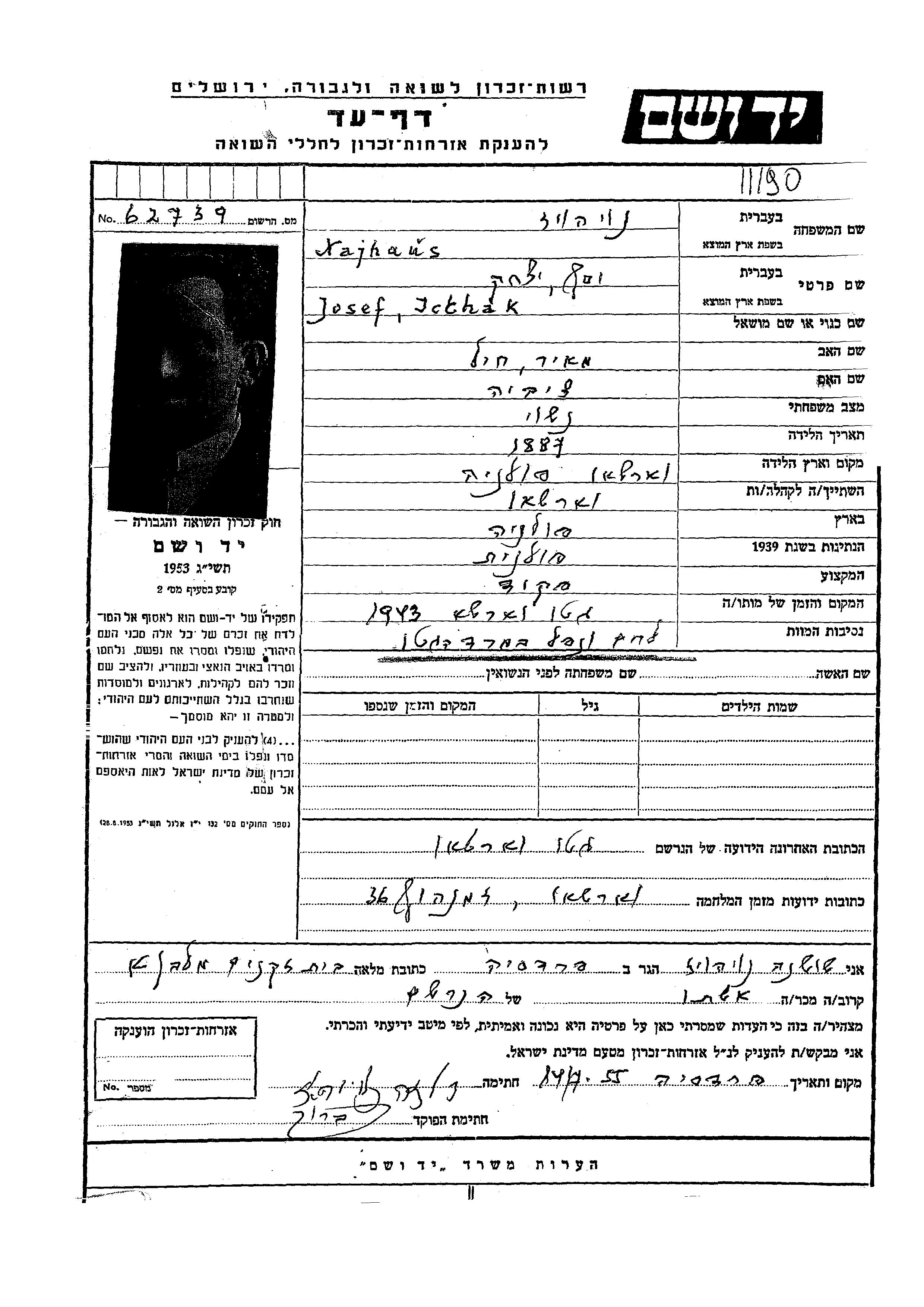 Josef Iechak a été assassiné pendant la Shoah. Lieu de la mort: Warsaw, Pologne en 1943.