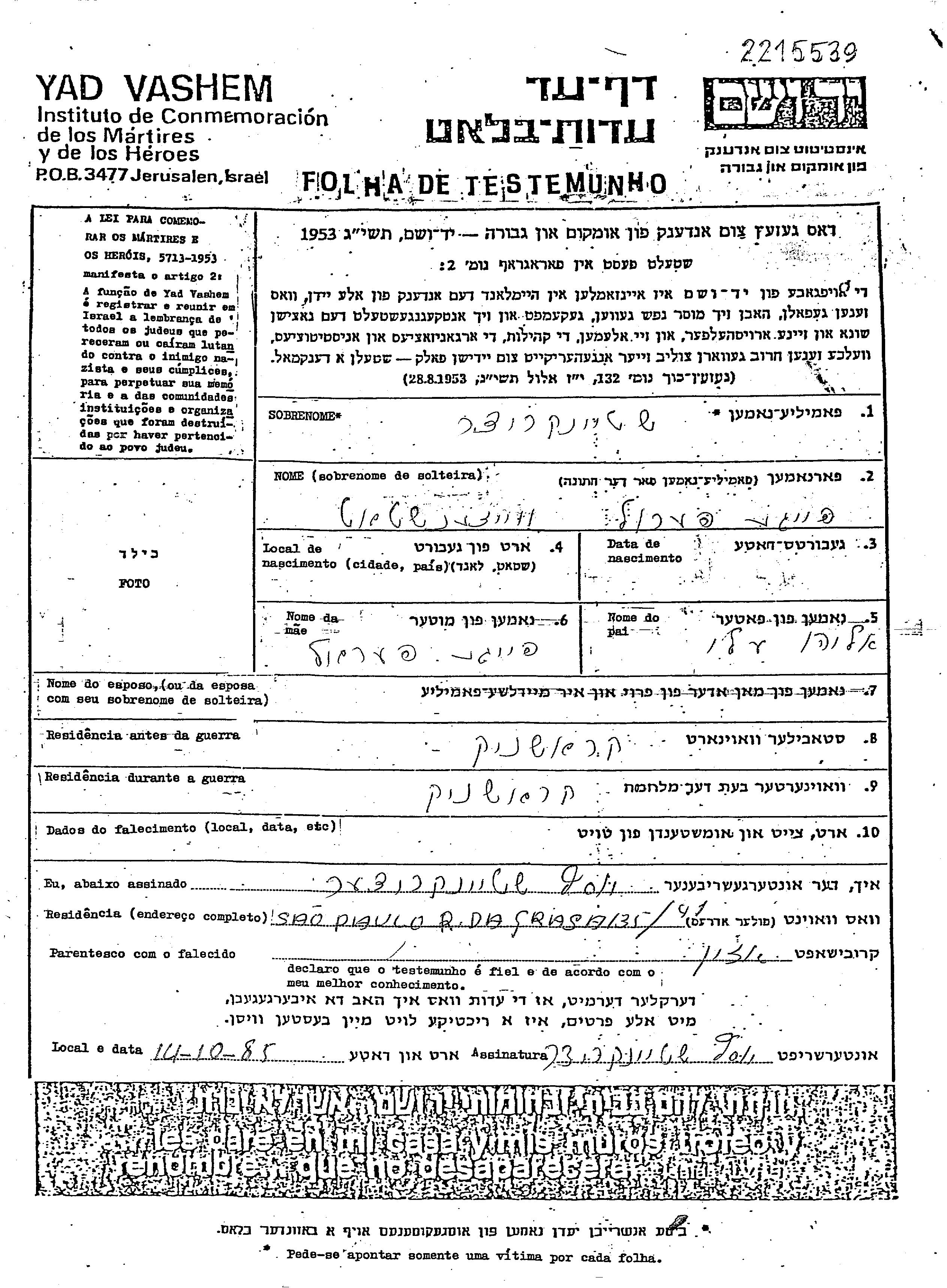 Yad Vashem - Pages of Testimony Names Memorial Collection