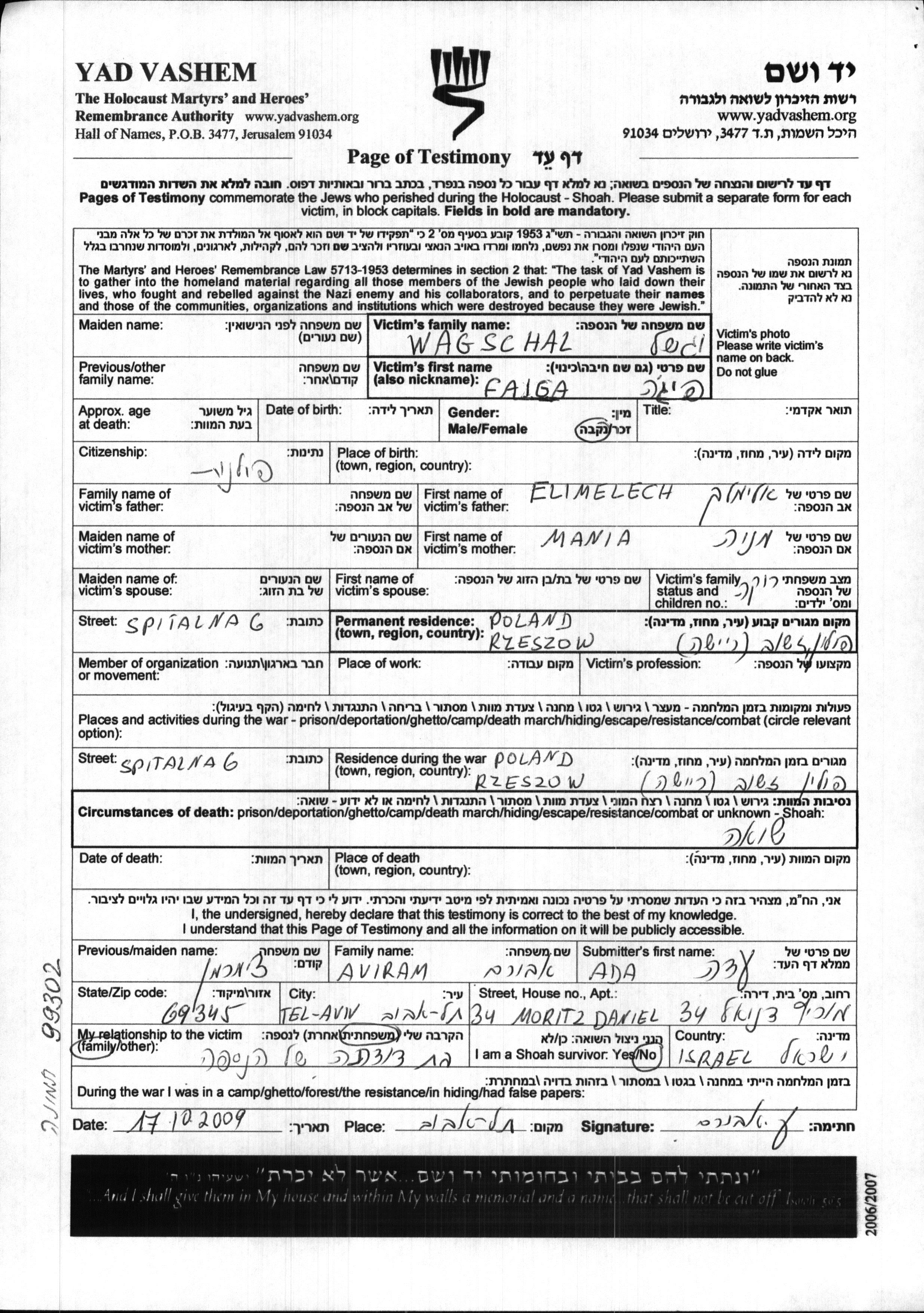 Yad Vashem - Pages of Testimony Names Memorial Collection