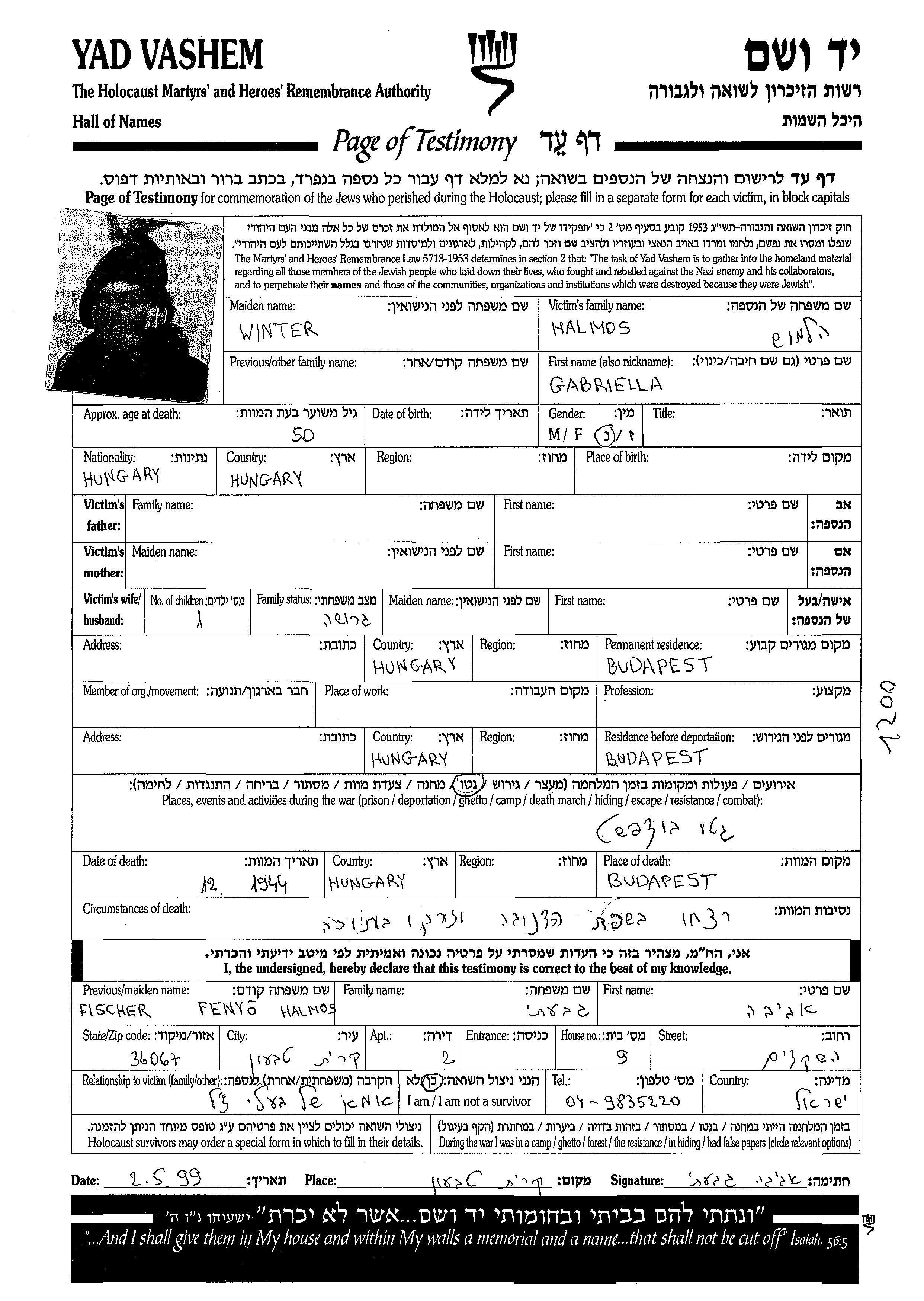 Yad Vashem - Pages of Testimony Names Memorial Collection