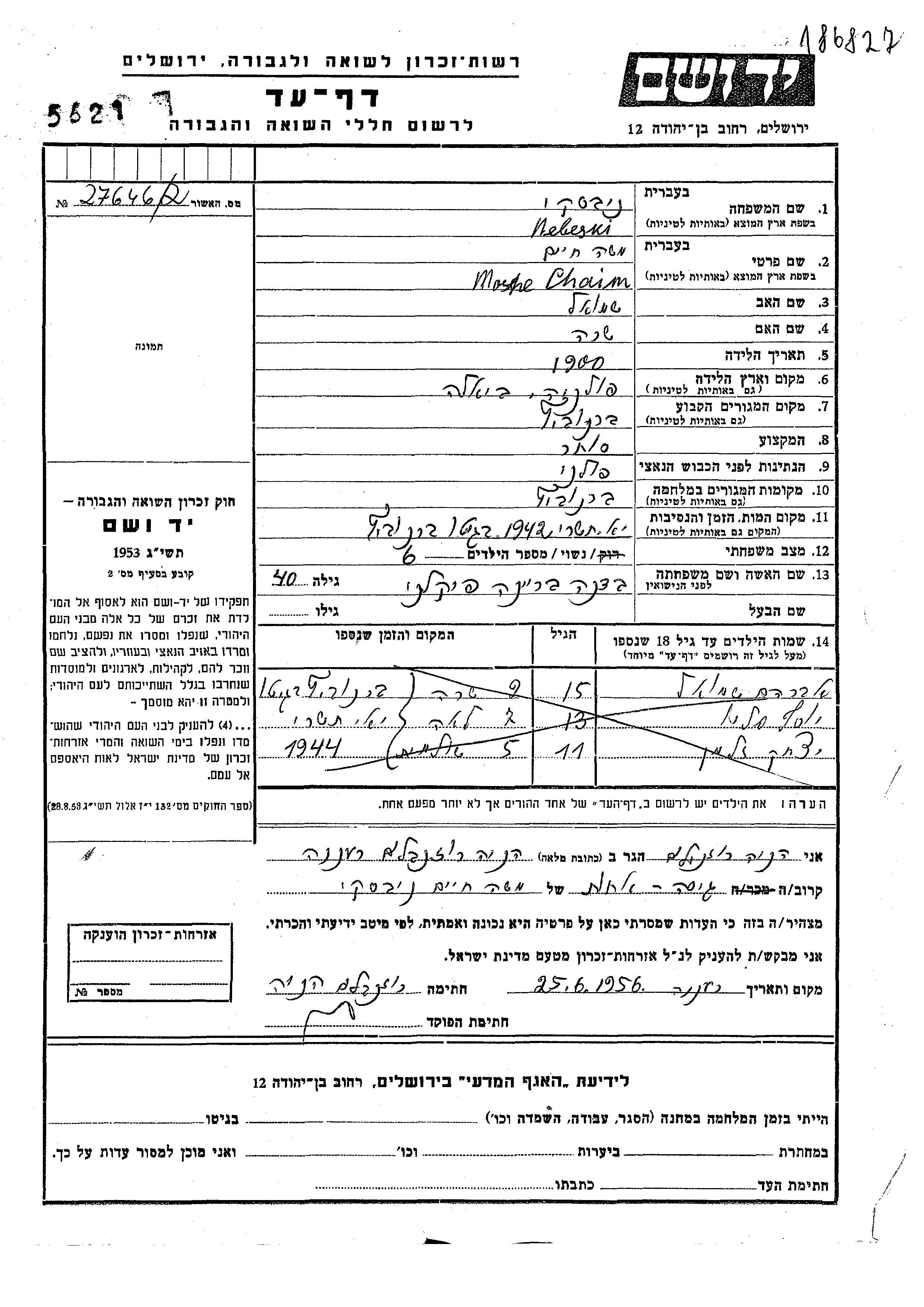 Yad Vashem - Pages of Testimony Names Memorial Collection