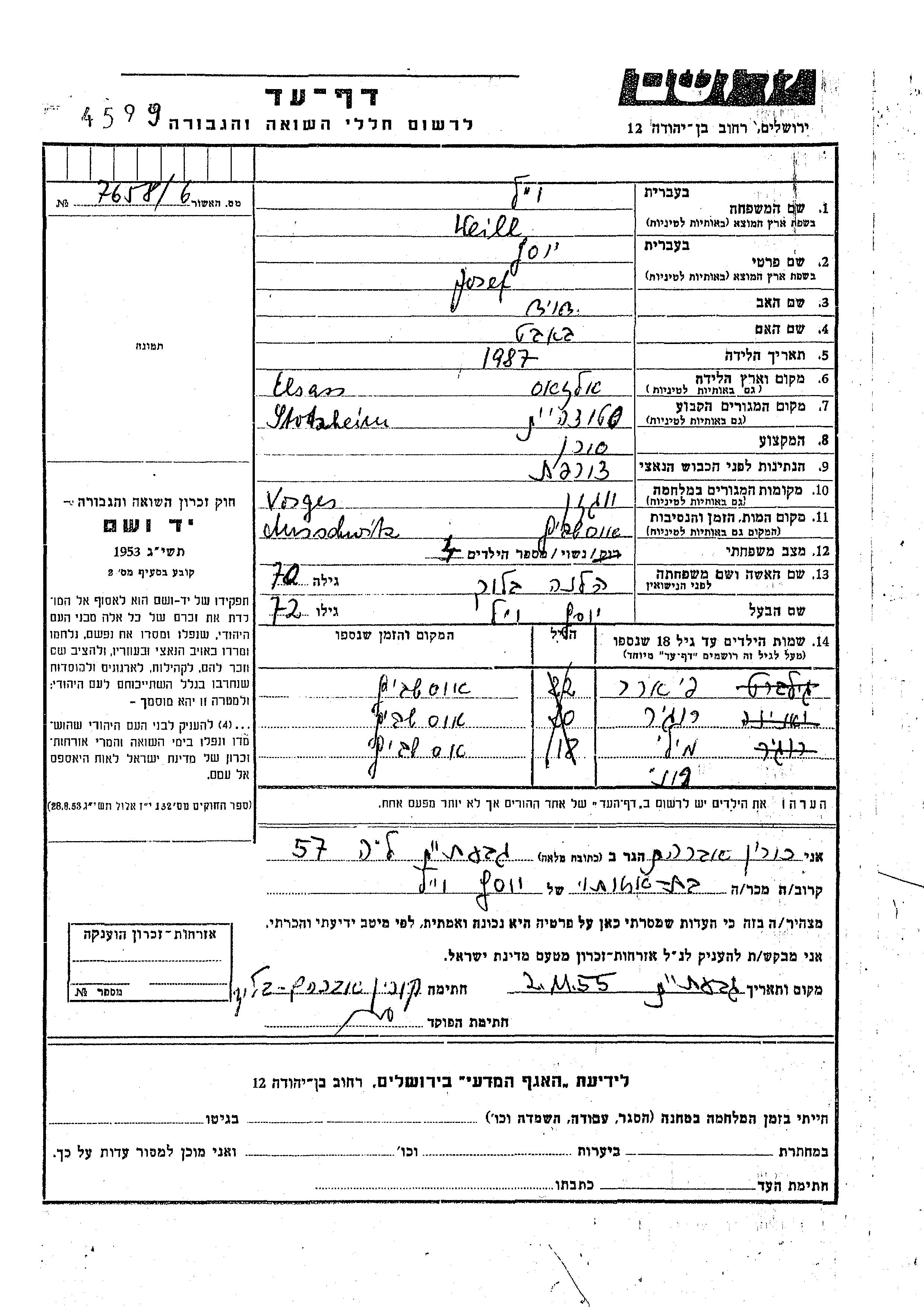 Yad Vashem - Pages of Testimony Names Memorial Collection