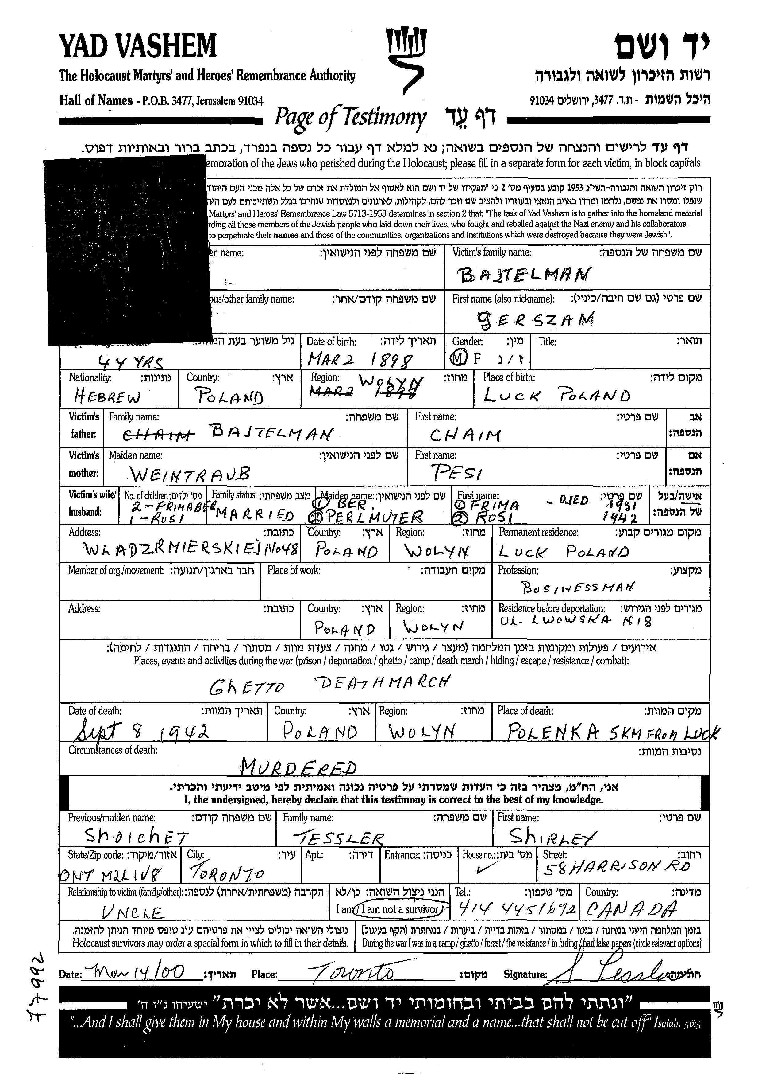 Bajtelman Rosi Luck, Pologne Feuille de témoignage