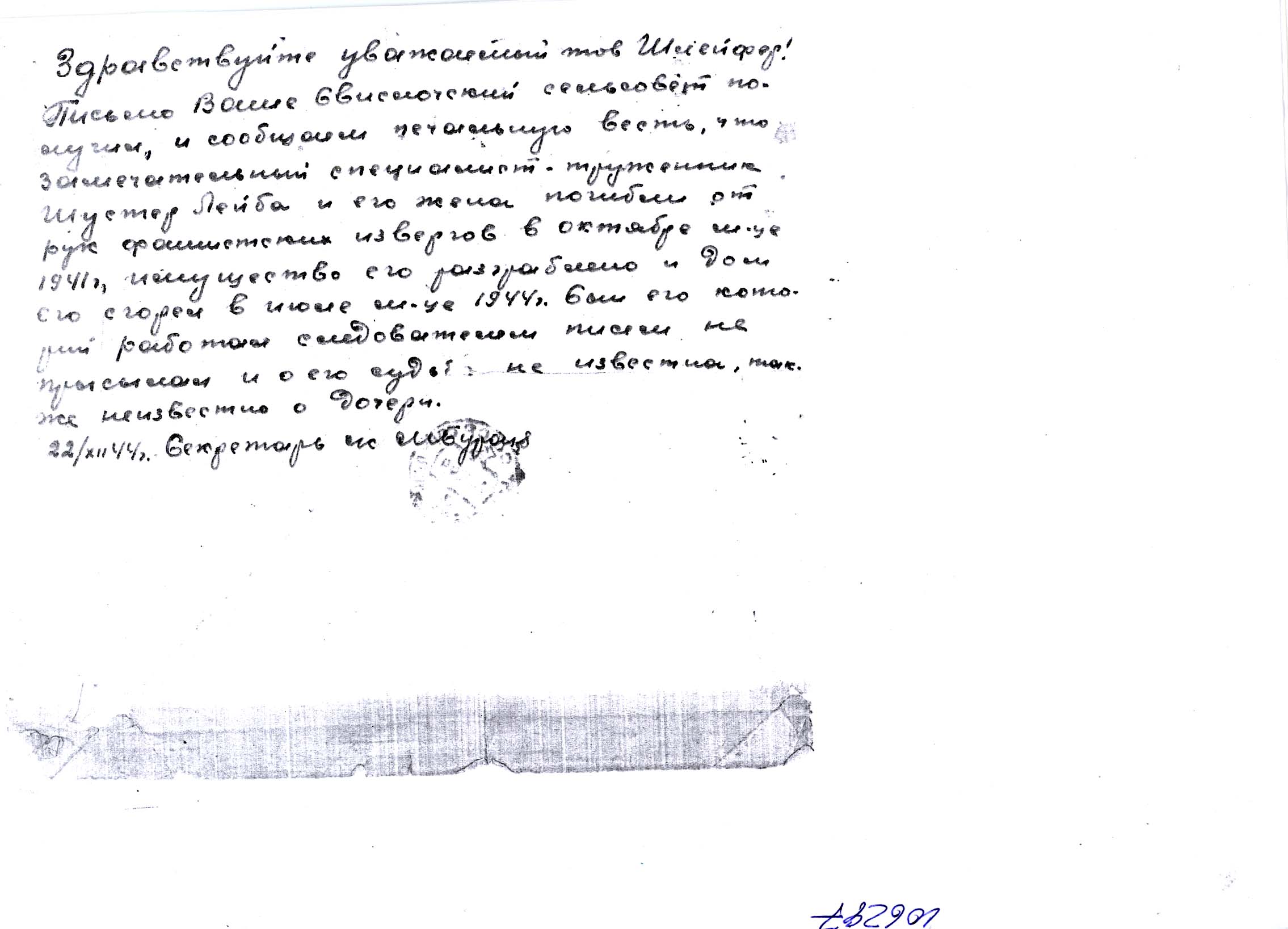Leyba Shuster. Il était Couvreur. Avant la seconde guerre mondiale il vivait à Svisloch, Bélorussie (URSS).