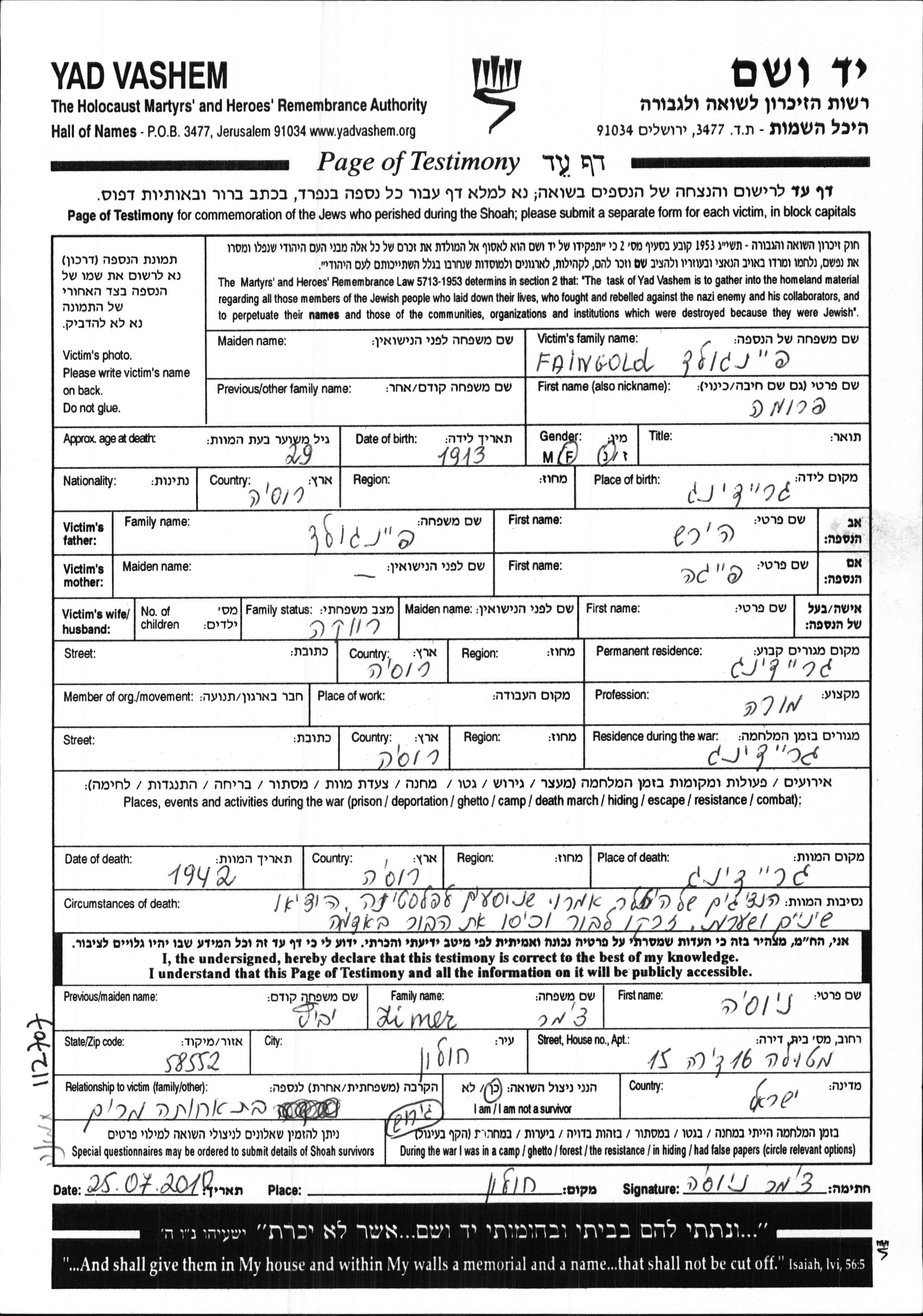 Yad Vashem - Pages of Testimony Names Memorial Collection