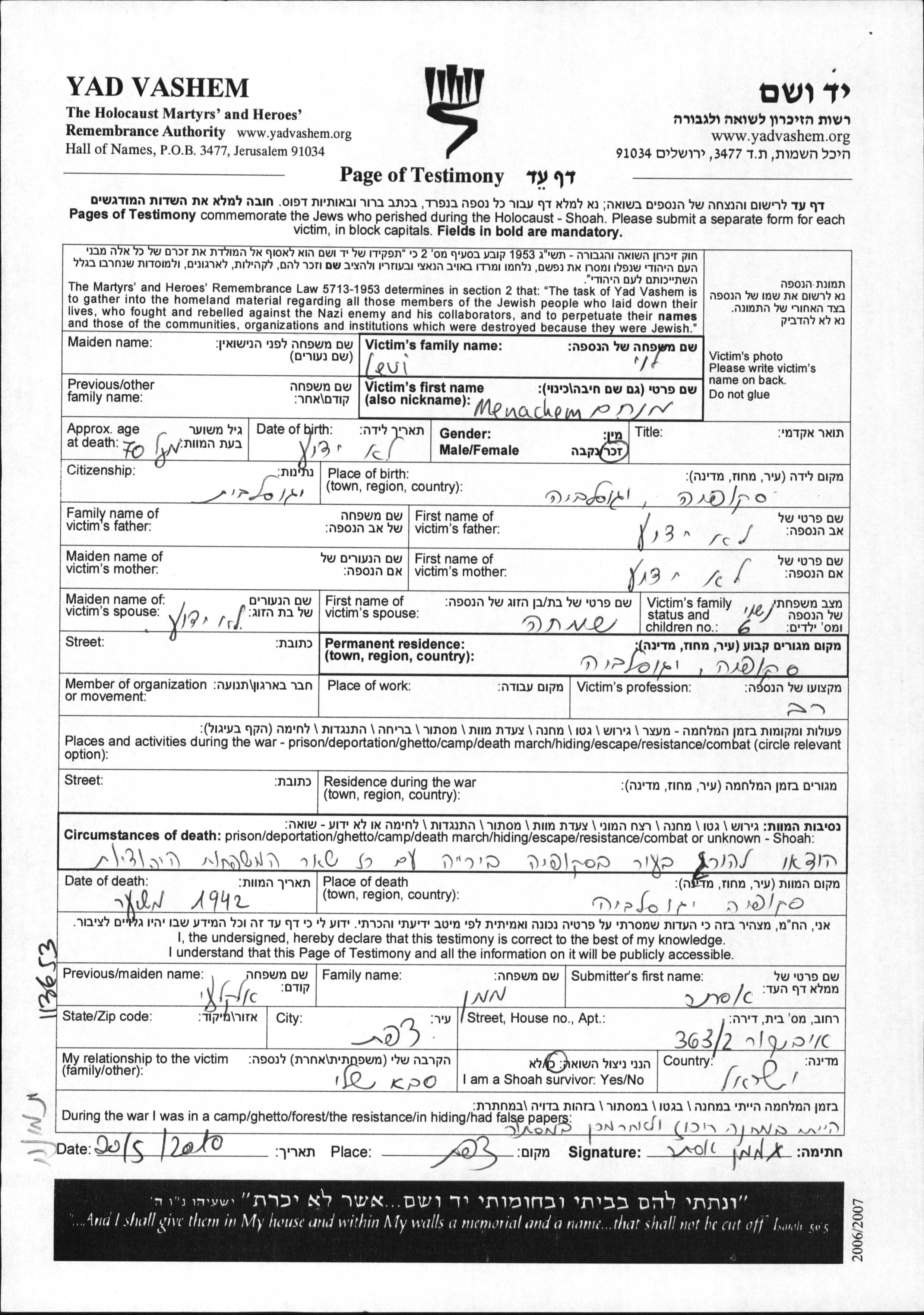 Yad Vashem - Pages of Testimony Names Memorial Collection