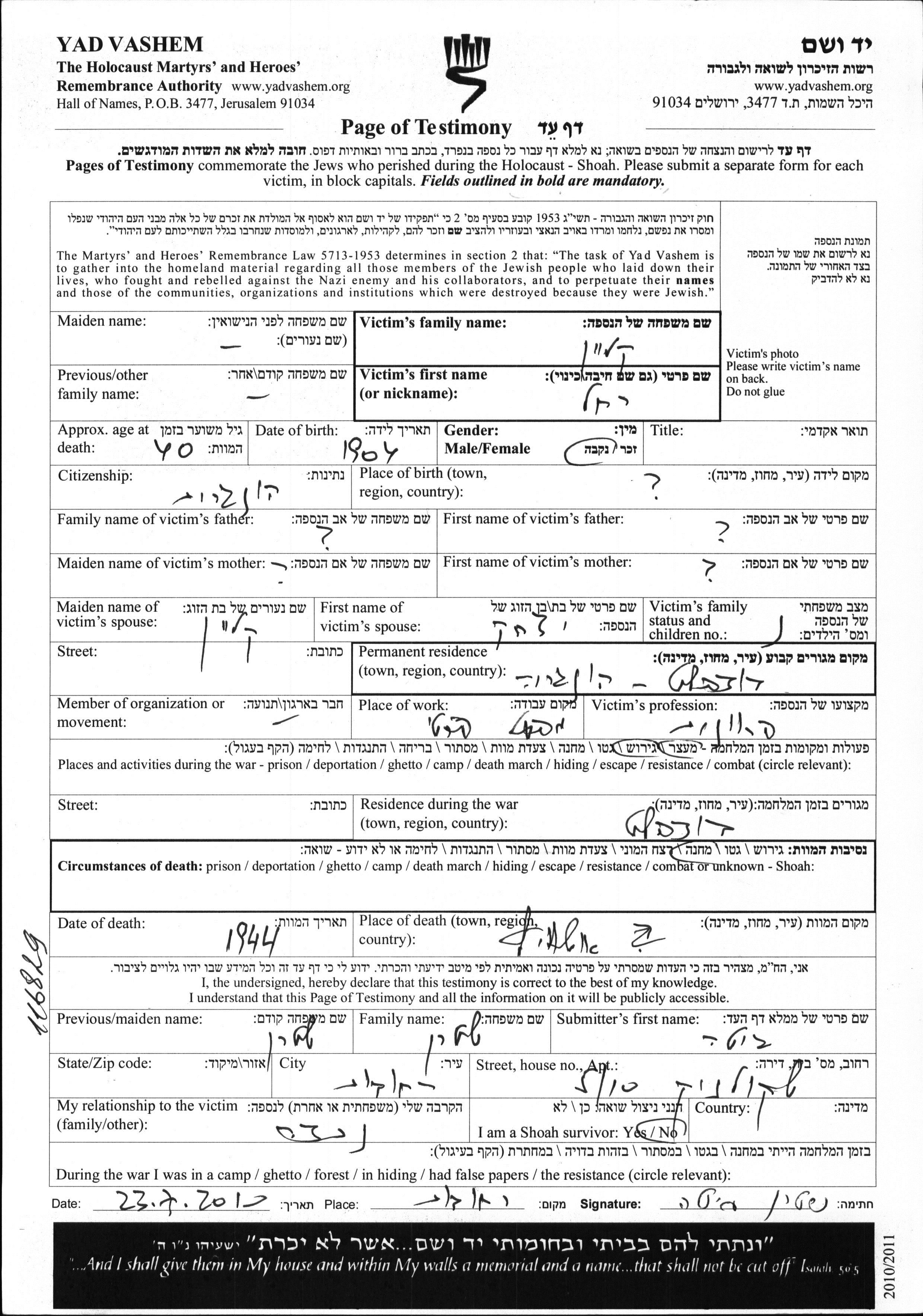 Yad Vashem - Pages of Testimony Names Memorial Collection