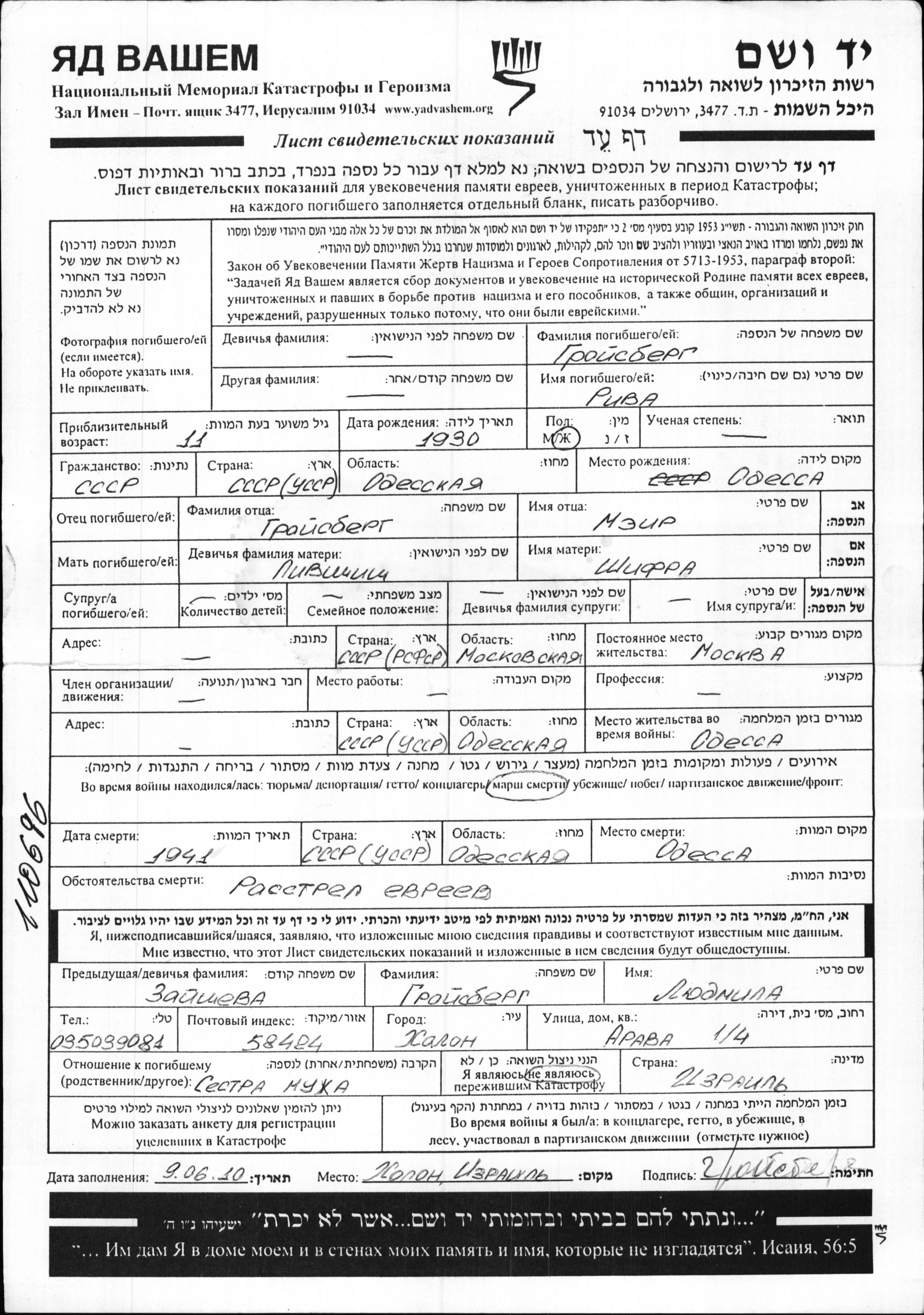 Yad Vashem - Pages of Testimony Names Memorial Collection