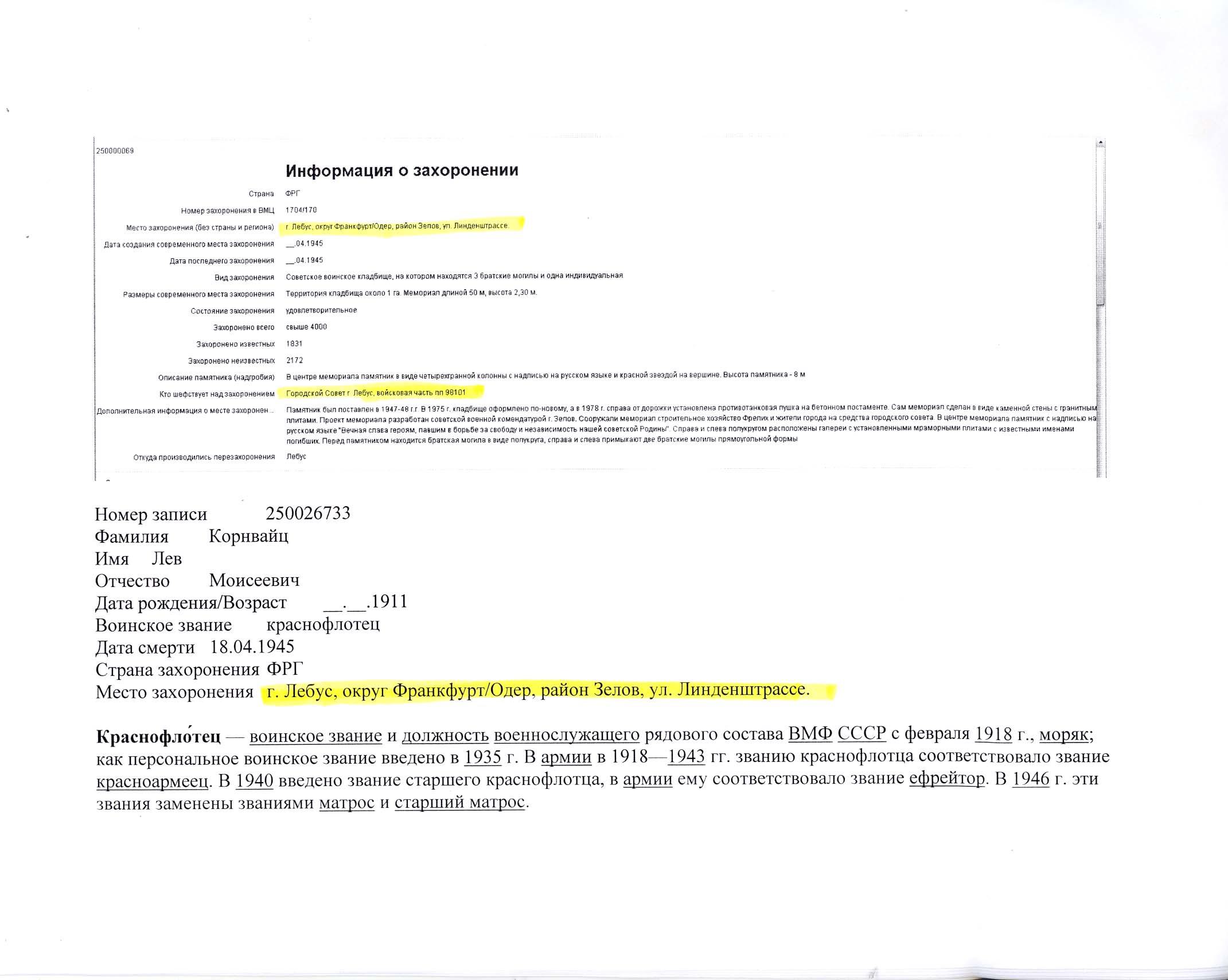 | Kornvaytz | Lev | endroit inconnu, | Documents personnels | |