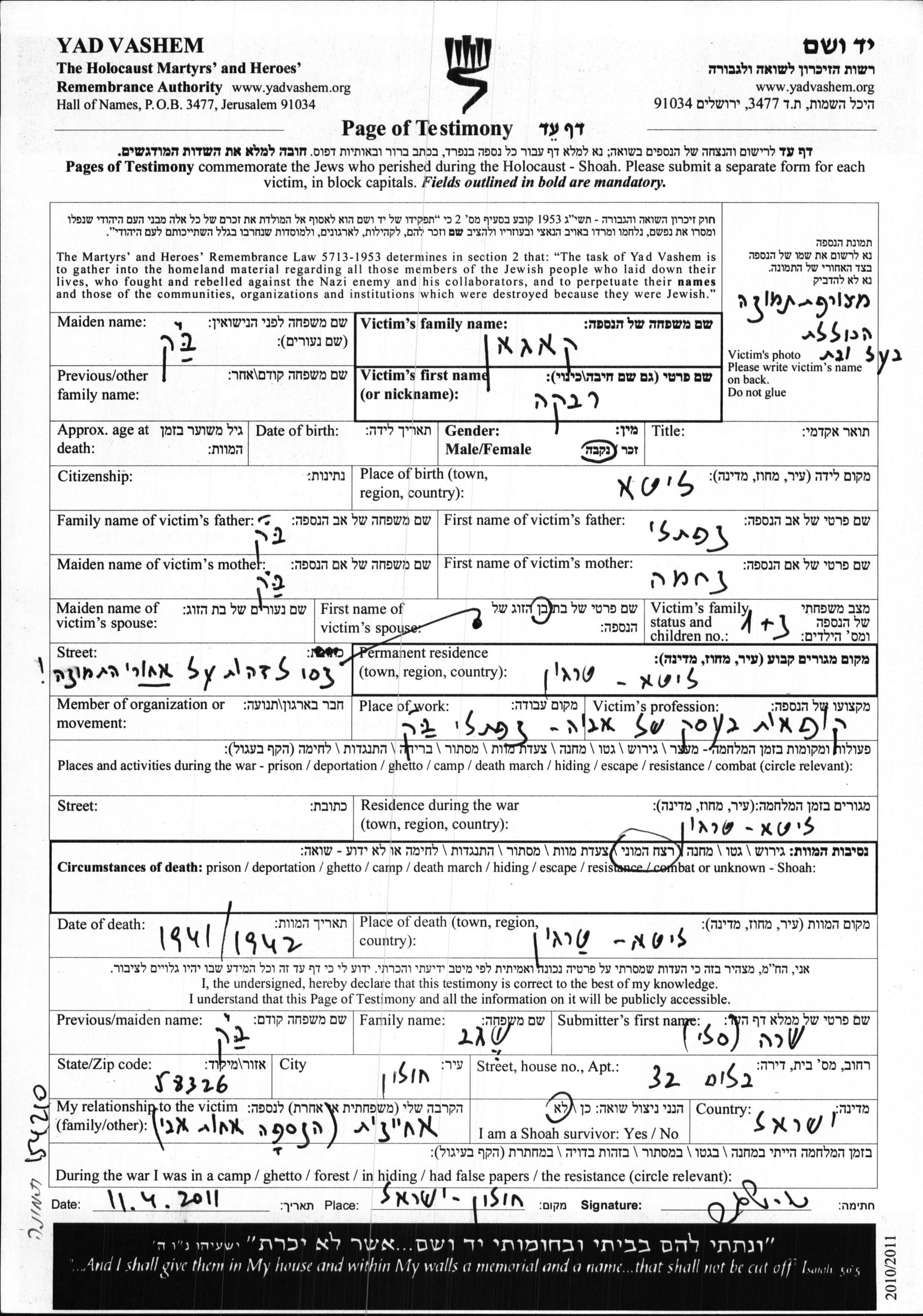Yad Vashem - Pages of Testimony Names Memorial Collection