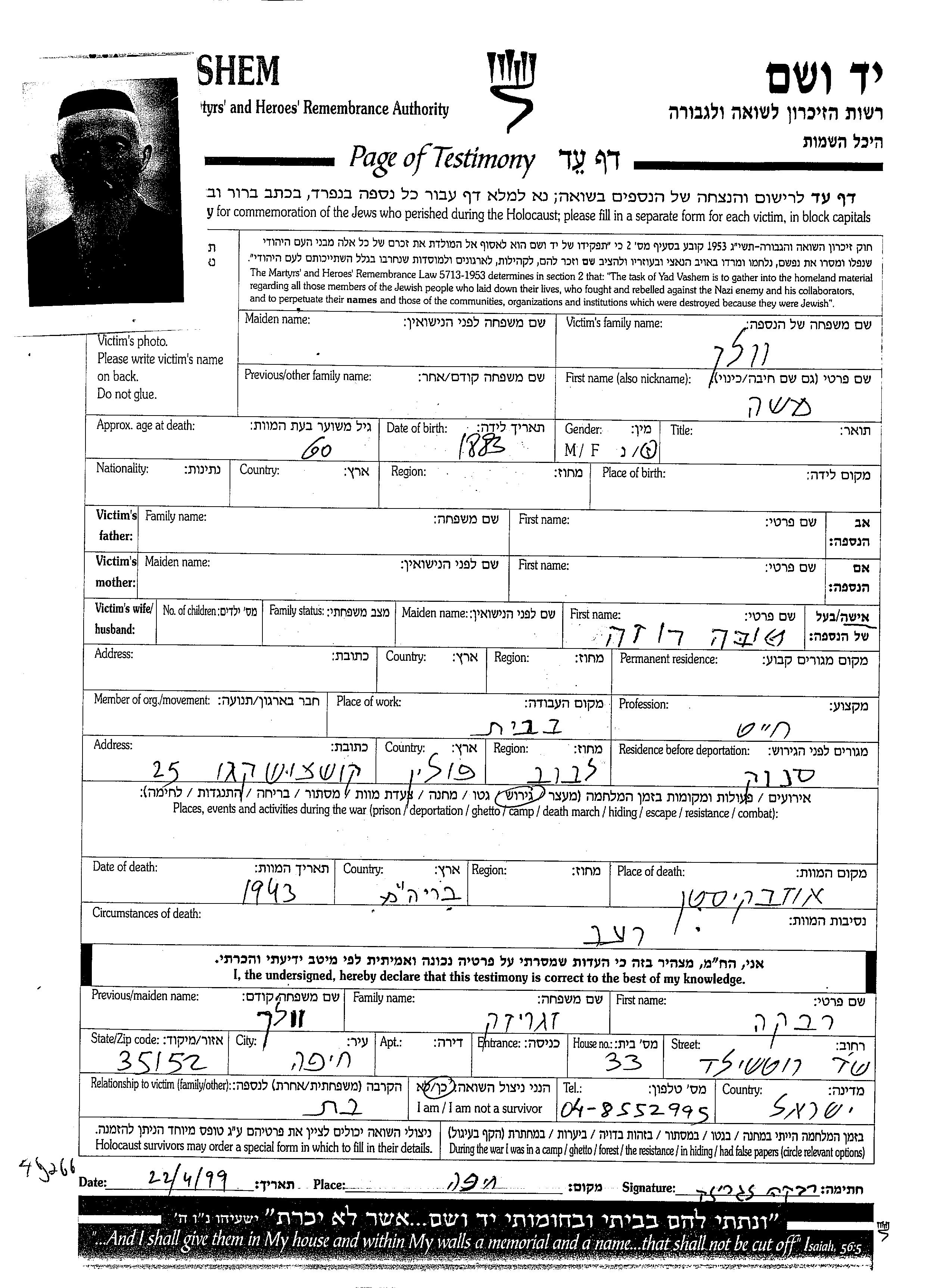 Yad Vashem - Pages of Testimony Names Memorial Collection