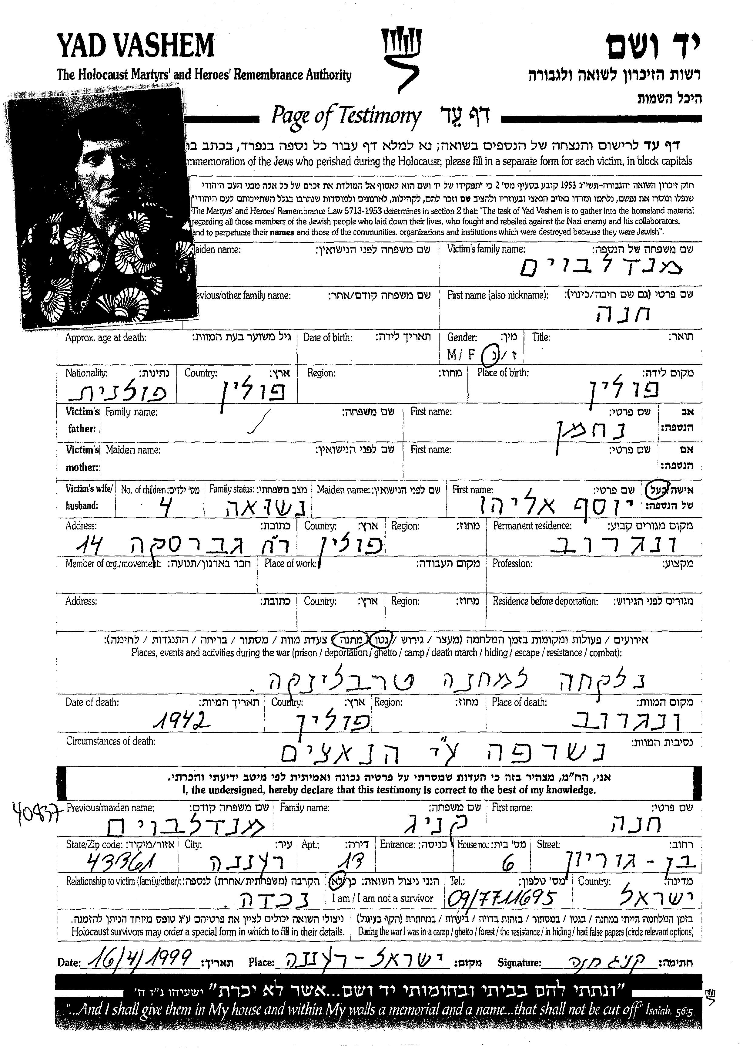 Yad Vashem - Pages of Testimony Names Memorial Collection