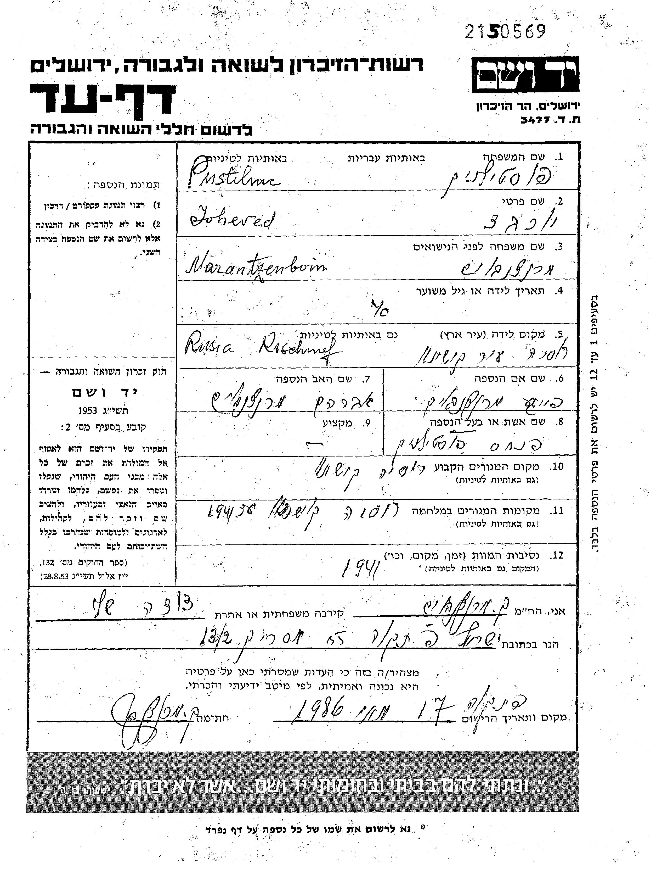 Yad Vashem - Pages of Testimony Names Memorial Collection