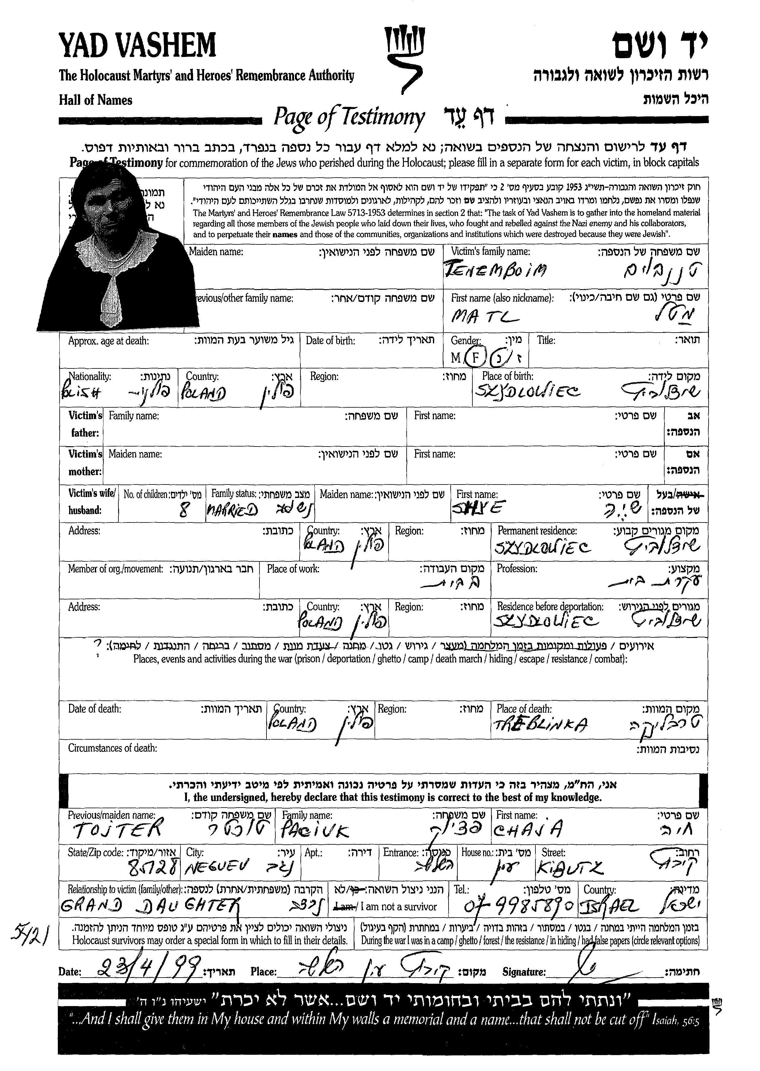 Yad Vashem - Pages of Testimony Names Memorial Collection
