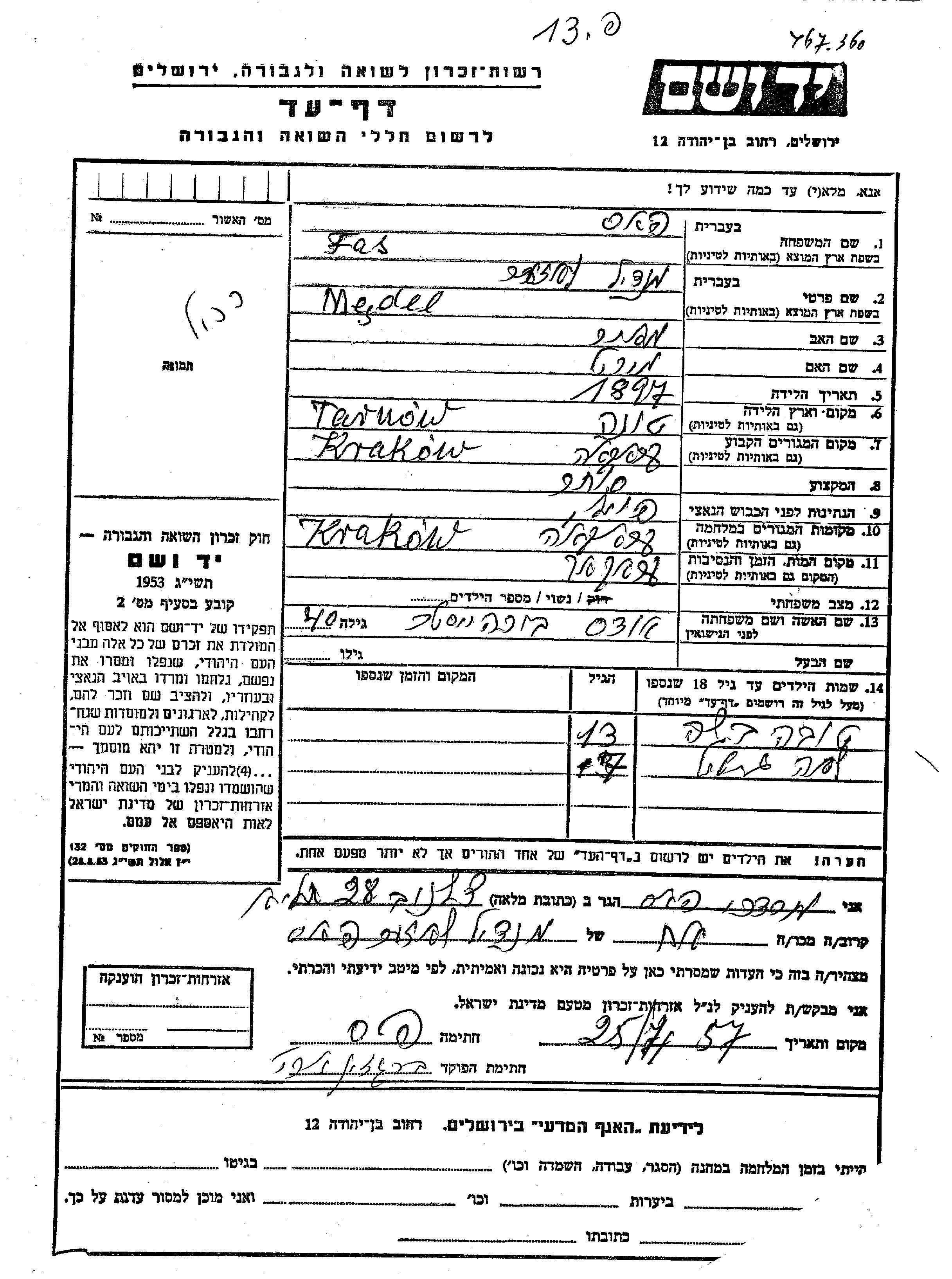 Yad Vashem - Pages of Testimony Names Memorial Collection