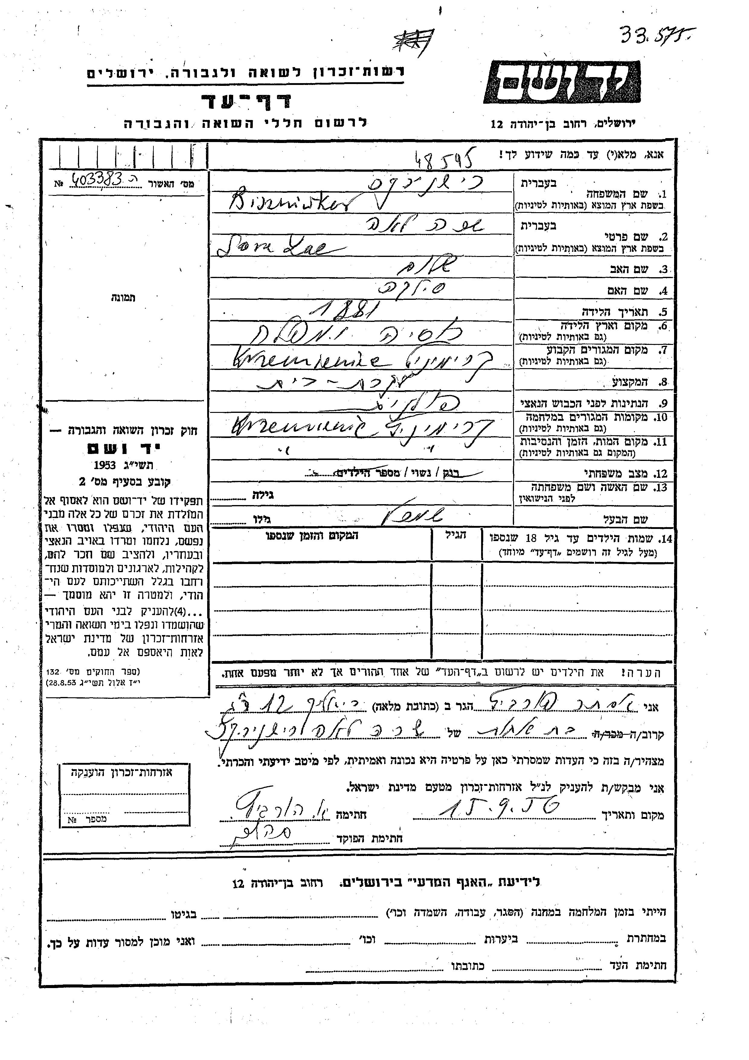 Yad Vashem - Pages of Testimony Names Memorial Collection