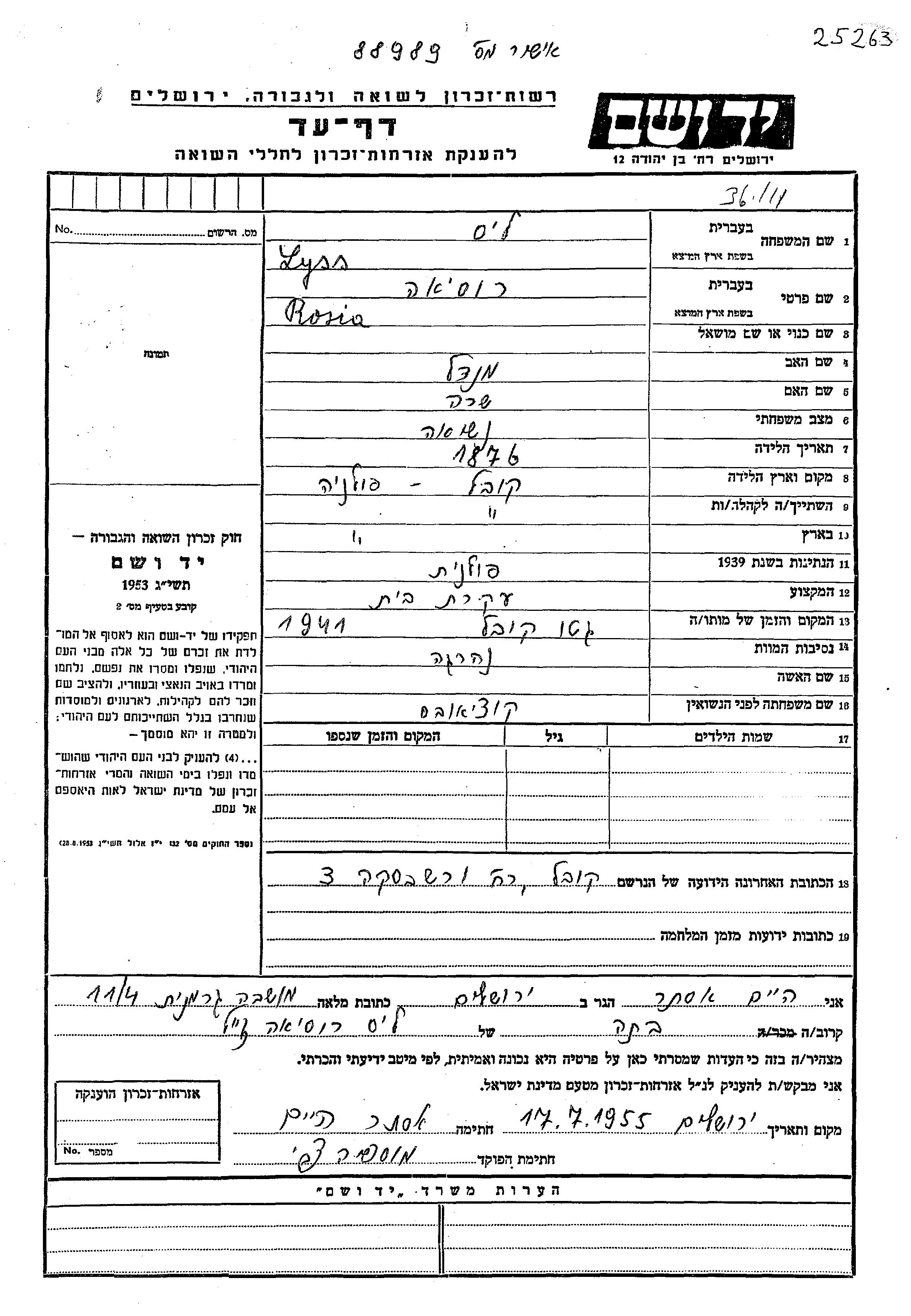 Yad Vashem - Pages of Testimony Names Memorial Collection