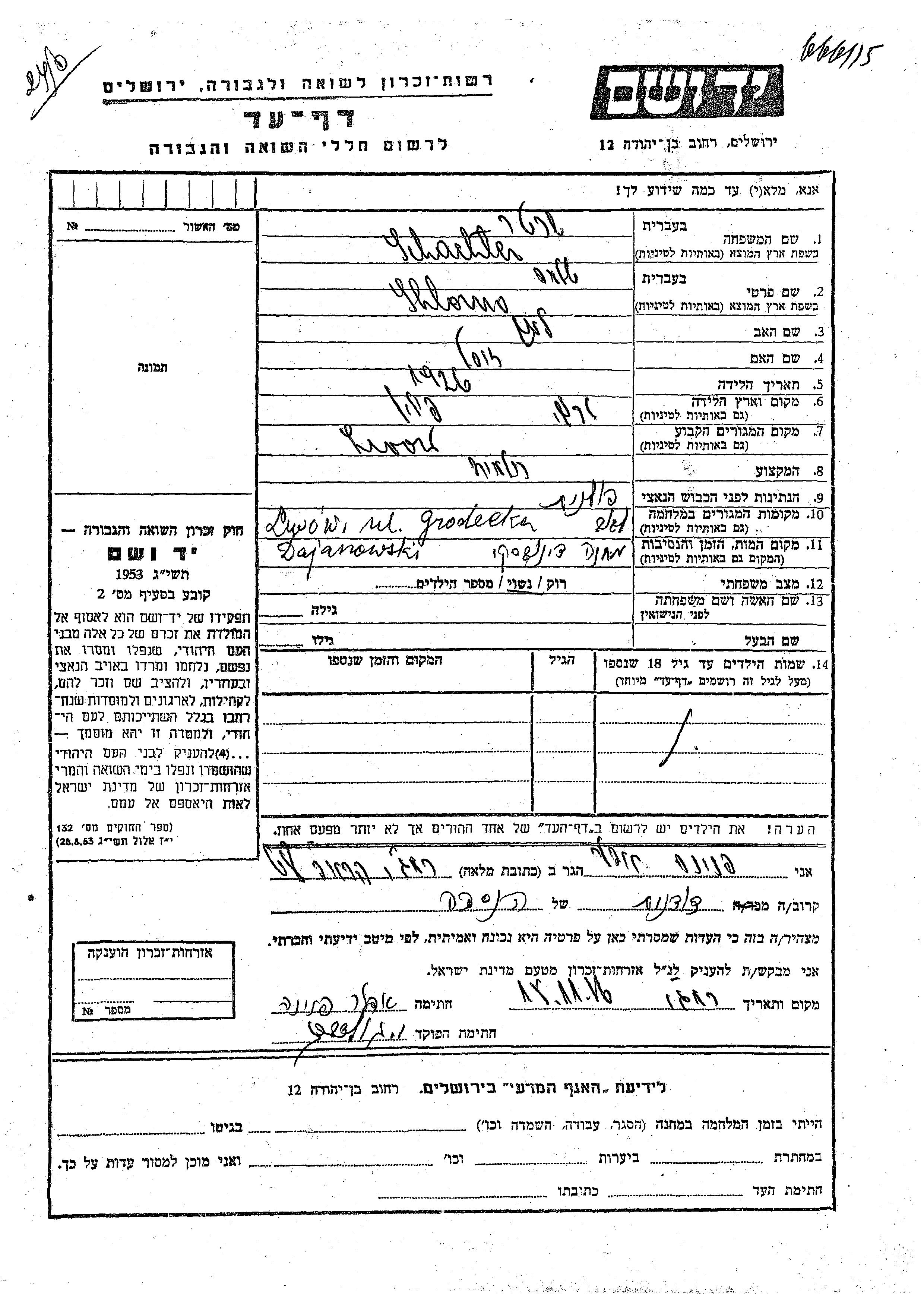 Yad Vashem - Pages of Testimony Names Memorial Collection
