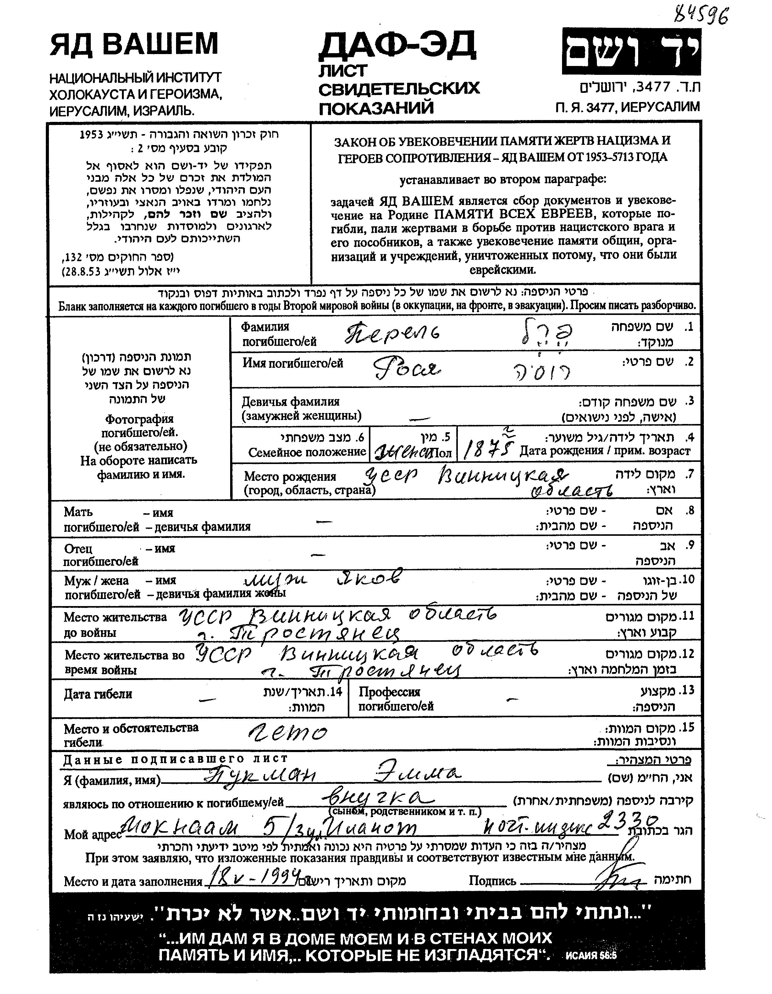 Yad Vashem - Pages of Testimony Names Memorial Collection