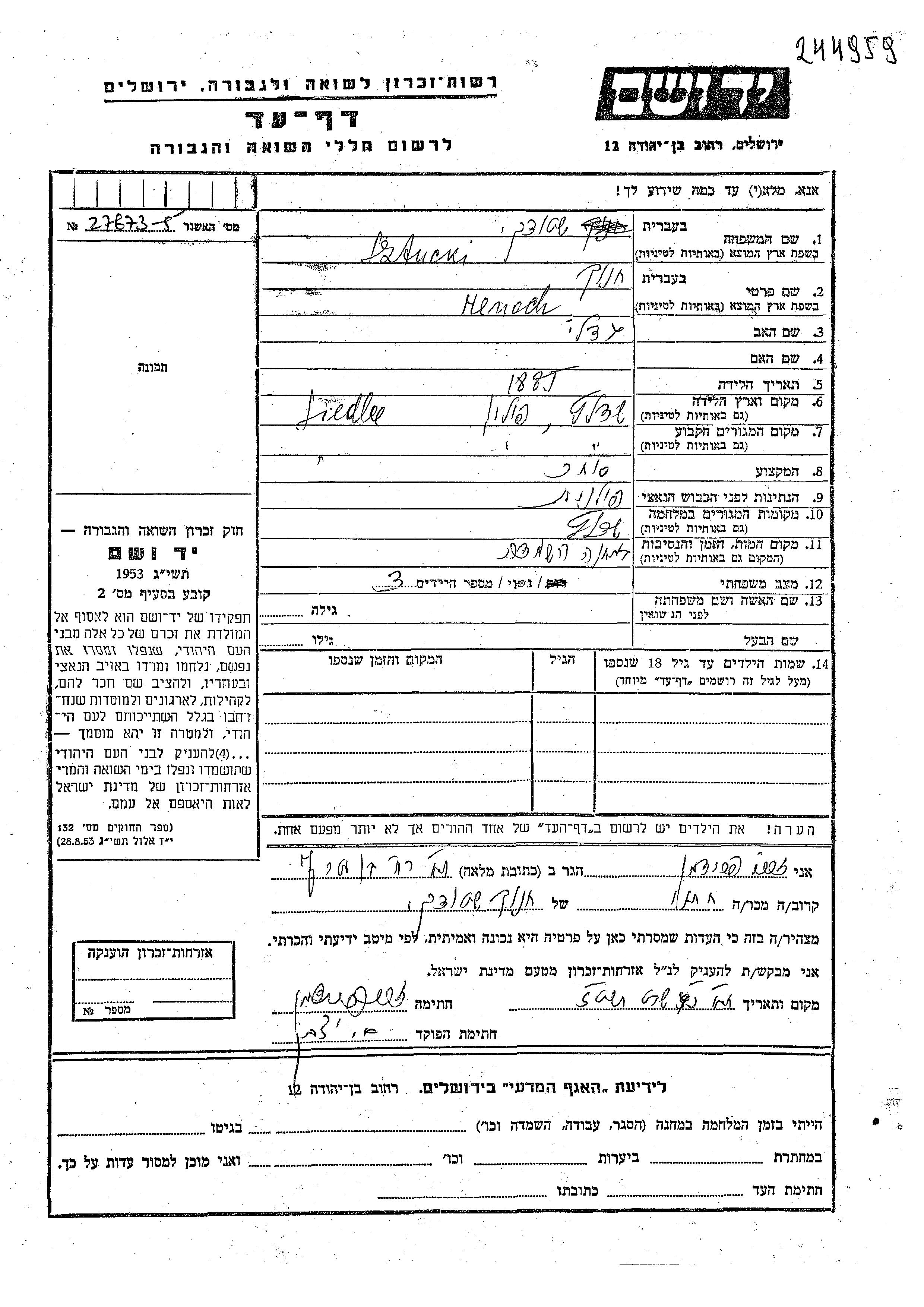 Yad Vashem - Pages of Testimony Names Memorial Collection