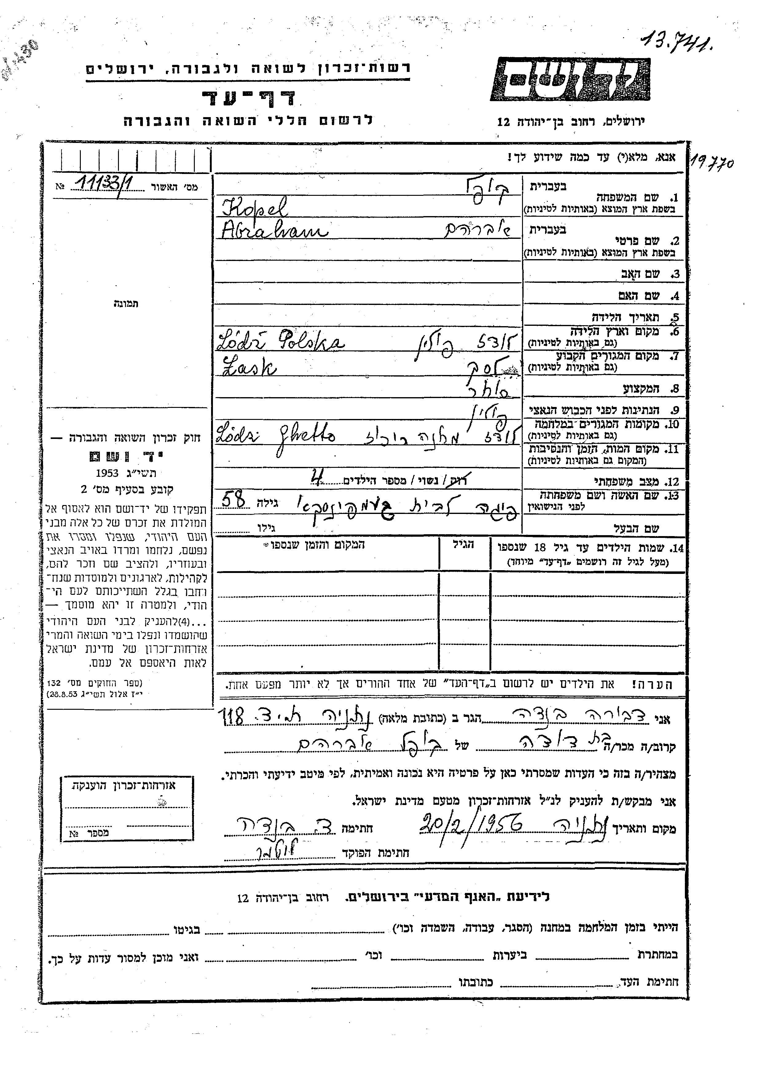 Yad Vashem - Pages of Testimony Names Memorial Collection