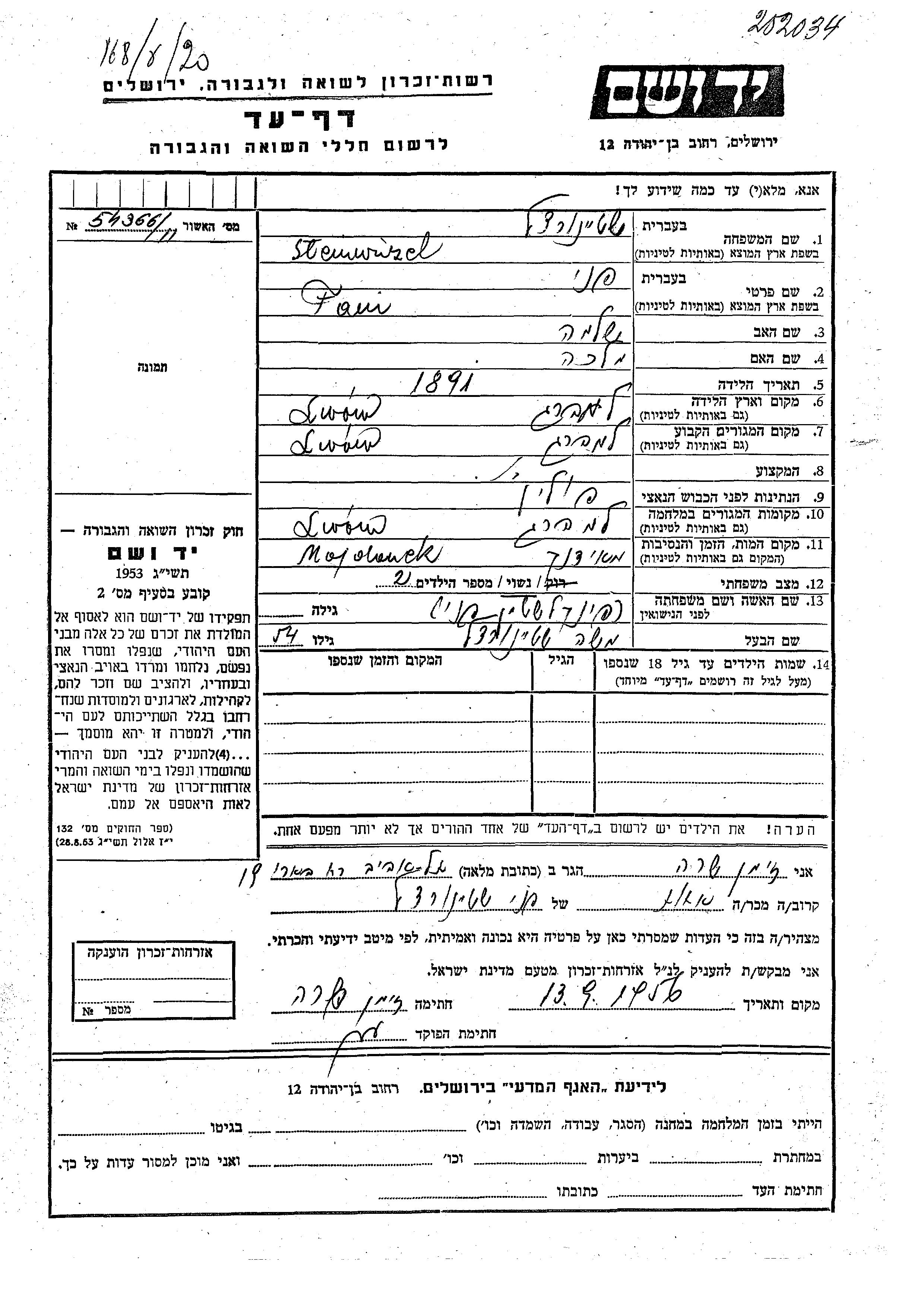 Yad Vashem - Pages of Testimony Names Memorial Collection