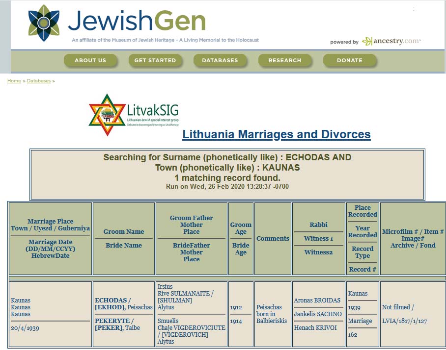 Marriage certificate: Echodas Peisachas and others