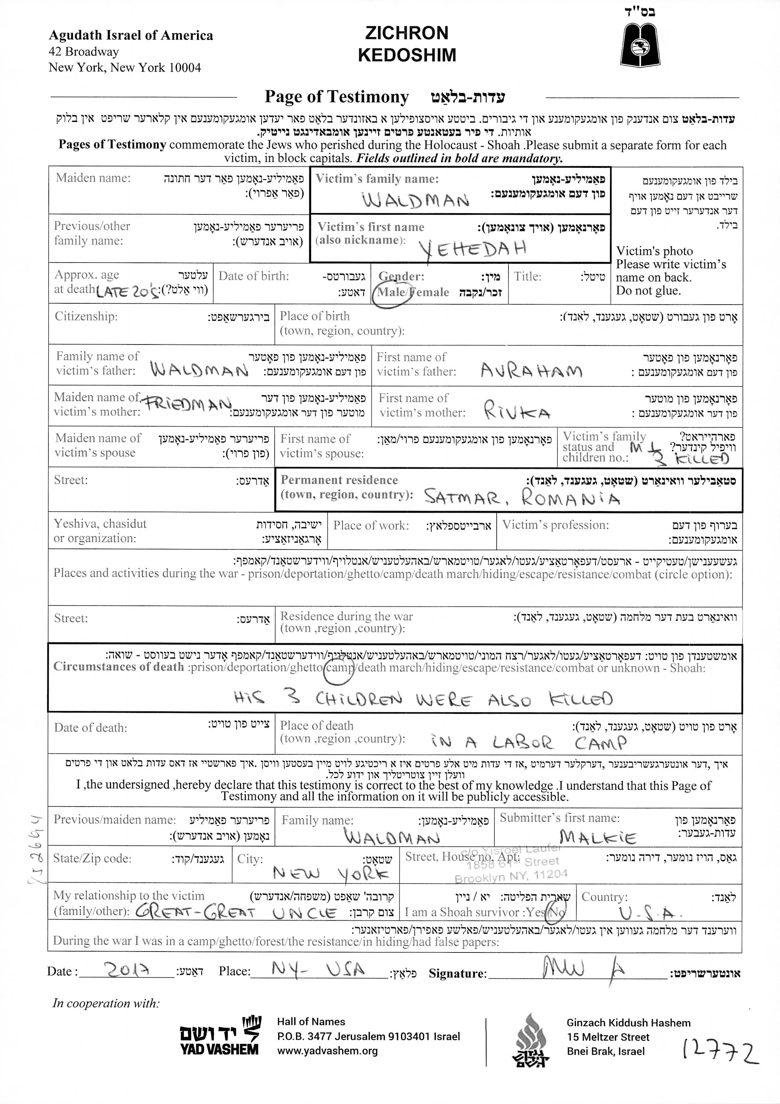 Recherche par nom du dépositeur de la Feuille de témoignage. Cette recherché indique aussi les noms de jeunes filles.