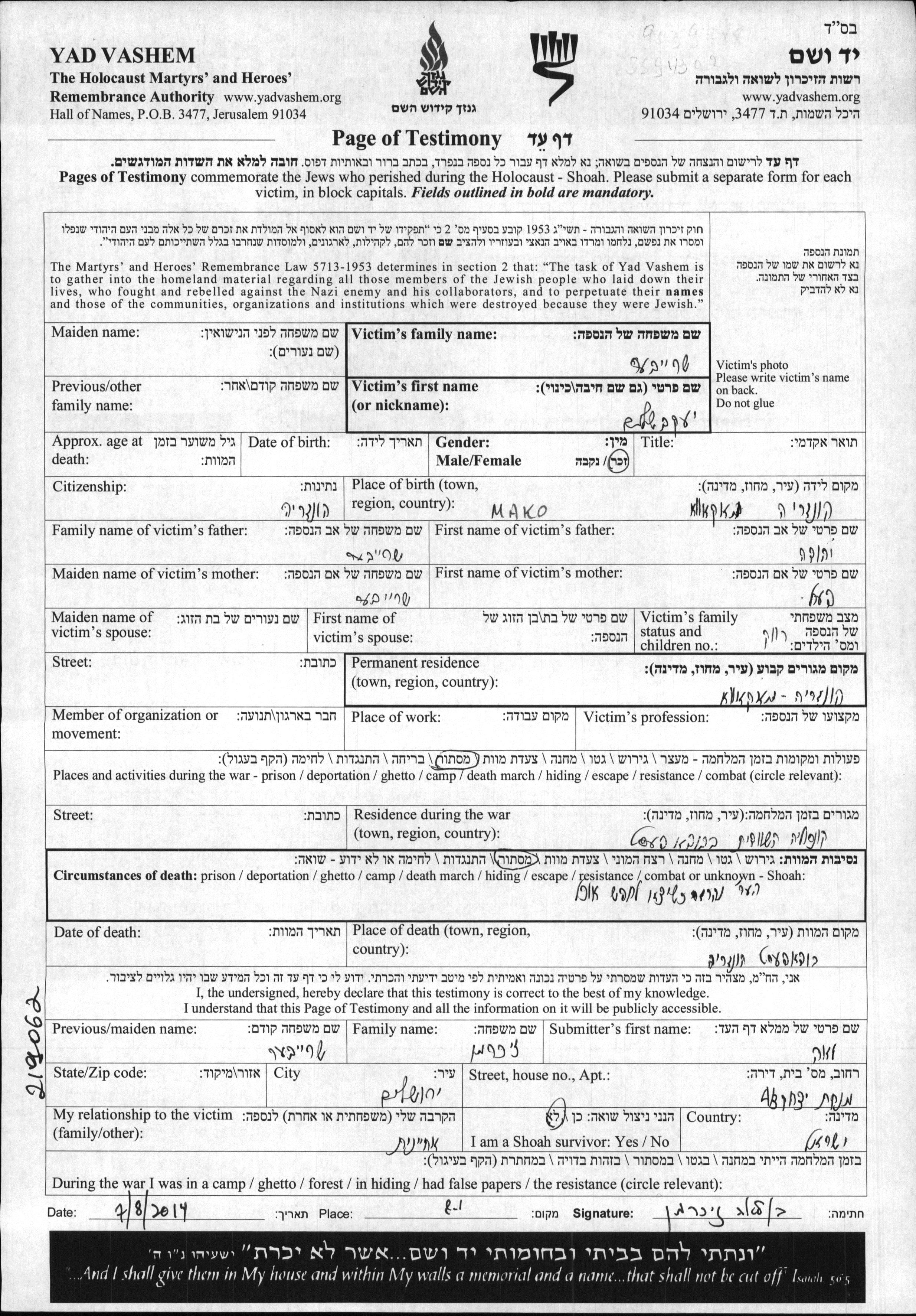 Yad Vashem - Pages of Testimony Names Memorial Collection