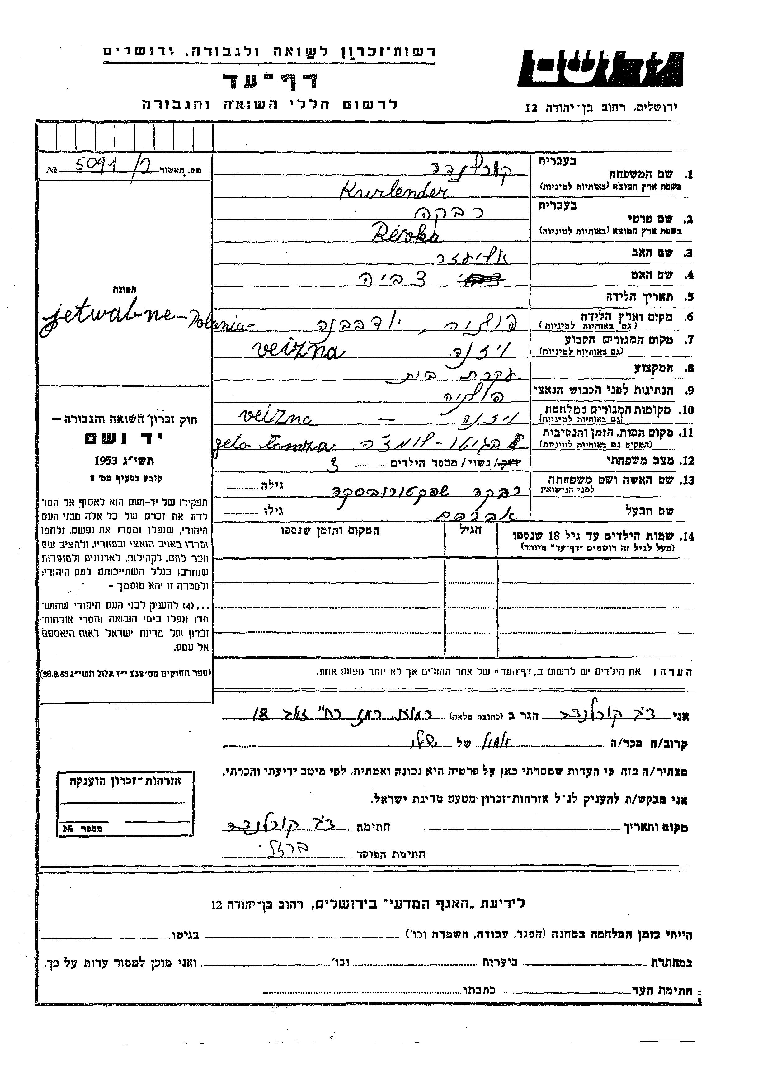 Yad Vashem - Pages of Testimony Names Memorial Collection